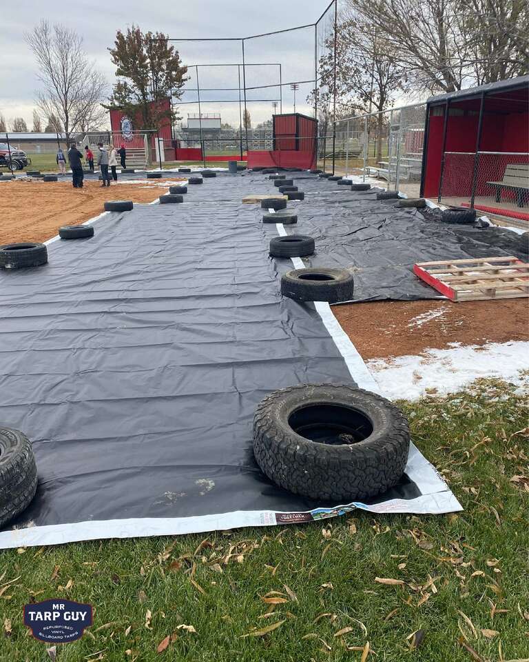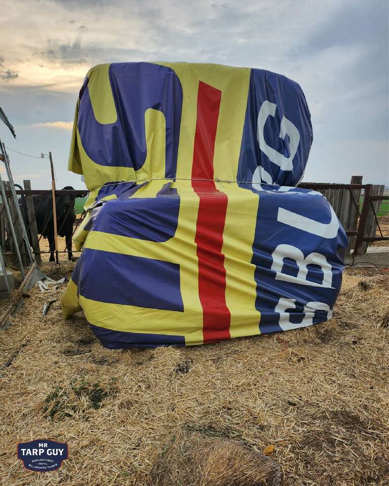 These billboard tarps work great for covering baseball or softball fields, hay, equipment, or any project you want to keep out of the elements. Make for great RV covers or skirts too and saves you a bunch of money over the commercial RV tarps that don't usually last long. They are 12mm thick with a various ad on the front, and black on the back. As a result, they can withstand heavy use and harsh weather conditions. In addition, I also have white tarps that are a bit thicker at 18mil. These tarps are easy to install and can be customized to fit any size or shape. They are also lightweight and easy to store when not in use. Below are just common sizes: 20x60 = $460 - Restocked! 14x48 = $150 10x30= $105 8x16 = $95 I usually have many more. Just reach out and I will be happy to share the full-size list with you! P.S. Our tarps are also versatile and can be used for various other purposes such as hay tarps, boat covers, carports, mobile homes, ATVs, house roofs, farm equipment, slip-n-slides, chicken coops, landscaping equipment, wood pile covers, and more.
