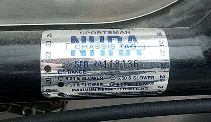 Don't know a whole lot about the car I purchased it last year it was certified in the sportsman's class for NHRA says 7.50 and slower for a quarter mile track. It is 202-in wheelbase. I do have a 454 bored 30 over with high compression Pistons and a powerglide with a new pump that could go with it for a little bit more money. If you're interested give me a call I'll try and answer any questions that you have. I found another dragster that I would like that's the only reason I'm selling it.