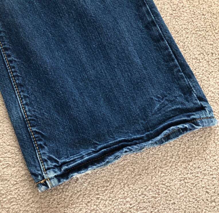 The only perceivable wear [aside from the awesome fading] is barely perceptible wear in the backs of each hem [again see images].