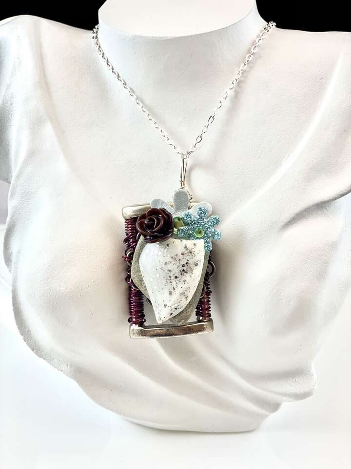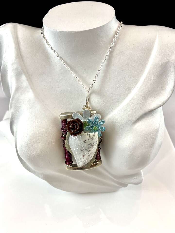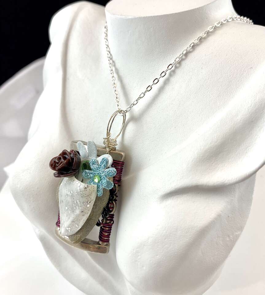 Vintage Salvage Mixed Media Pendant Necklace - This Designer Piece Truly Unique- On A Silver Plated Chain - C PIX. Check out my other jewelry listings and receive $1 off each listing when you buy 5 or more @ $5 or more Eligible items.