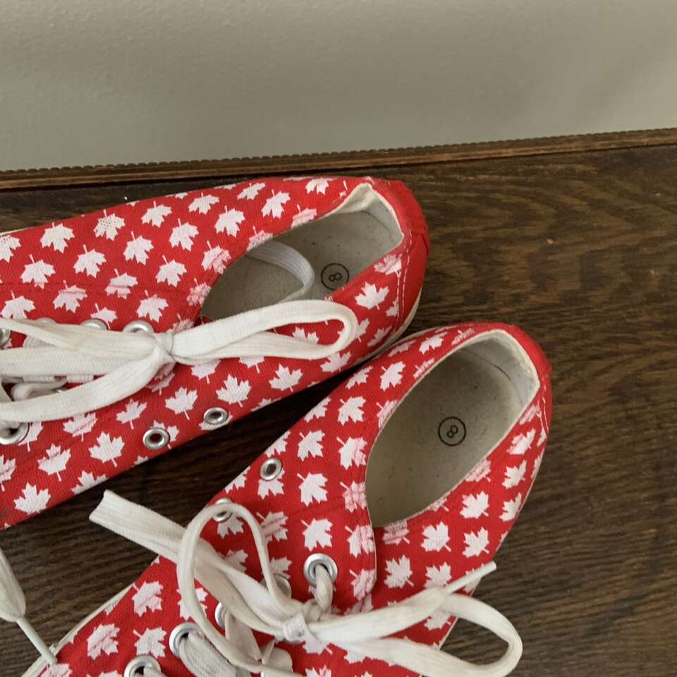 Canada Red & White Maple Print Leaf Sneakers Men’s Size 8 or Women’s Size 10 Similar to Converse