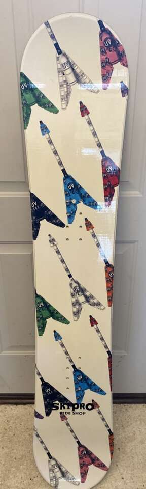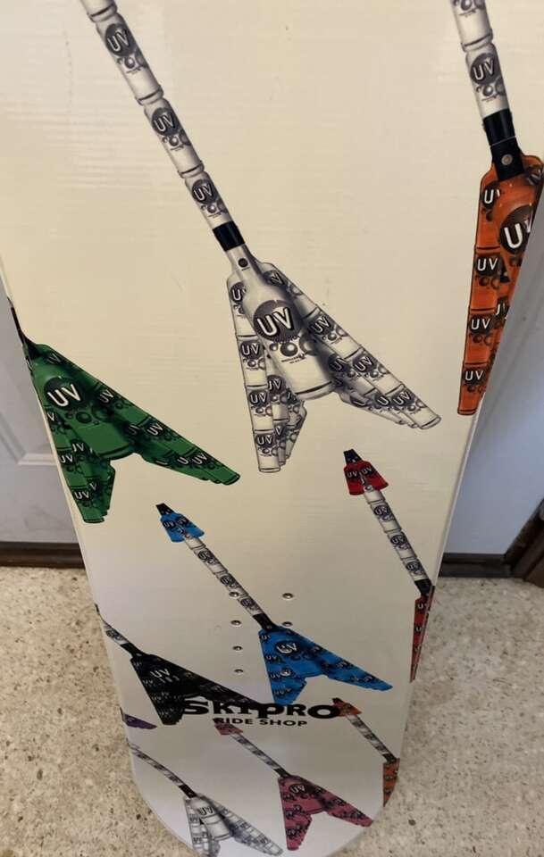 UV Vodka Promotional Flying V Guitar154 CM snowboard for sale. Great board. No bindings included. Either take it on the slopes or hang it on the wall as an art piece. See photos. Call or text with questions. Cash only please