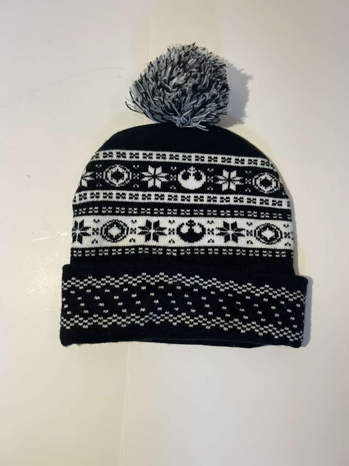Star Wars Christmas Theme Pom Pom Beanie Black White Like New Condition