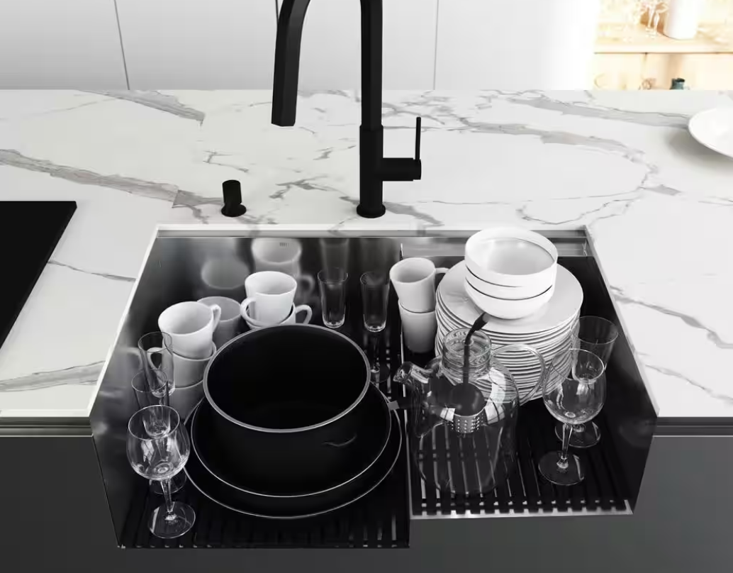 New! Vigo Hampton Stainless Steel 28 Single Bowl Workstation Undermount Kitchen Sink with Integrated Ledge and Accessories. Includes strainer and cover, drying rack, cutting board and grid. Retails for $550 at Home Depot Cash or Venmo