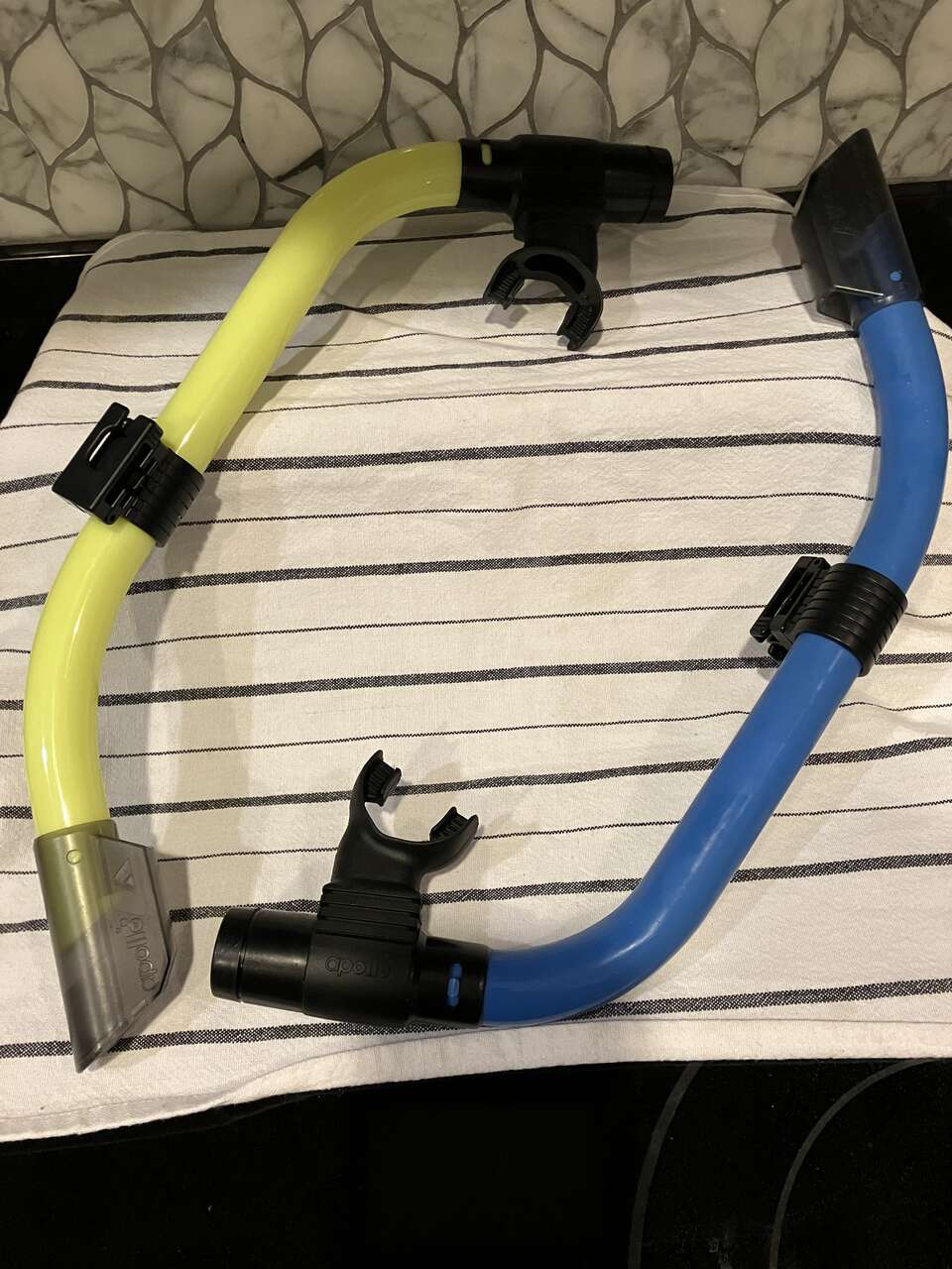 VenmoTWO APOLLO FLEXIBLE SNORKLE TUBES WITH MOUTHPIESES. One in Neon Yellow and One in Blue. 20" long x 1" diameter. $138 Retail Value. Both for $55. In New Condition. Cash/Venmo. In Sandy. 801-201-5350