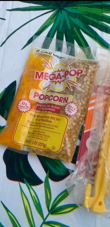 Comes with popcorn kit and 32 oz cups. Enough for 10 servings