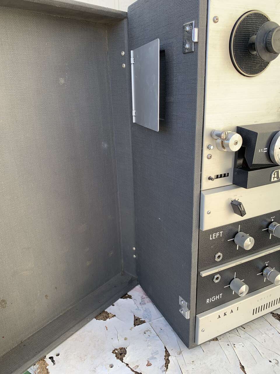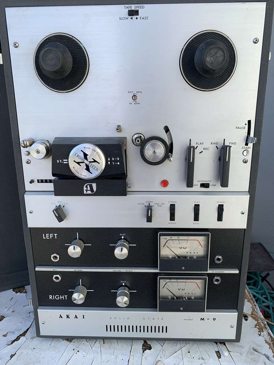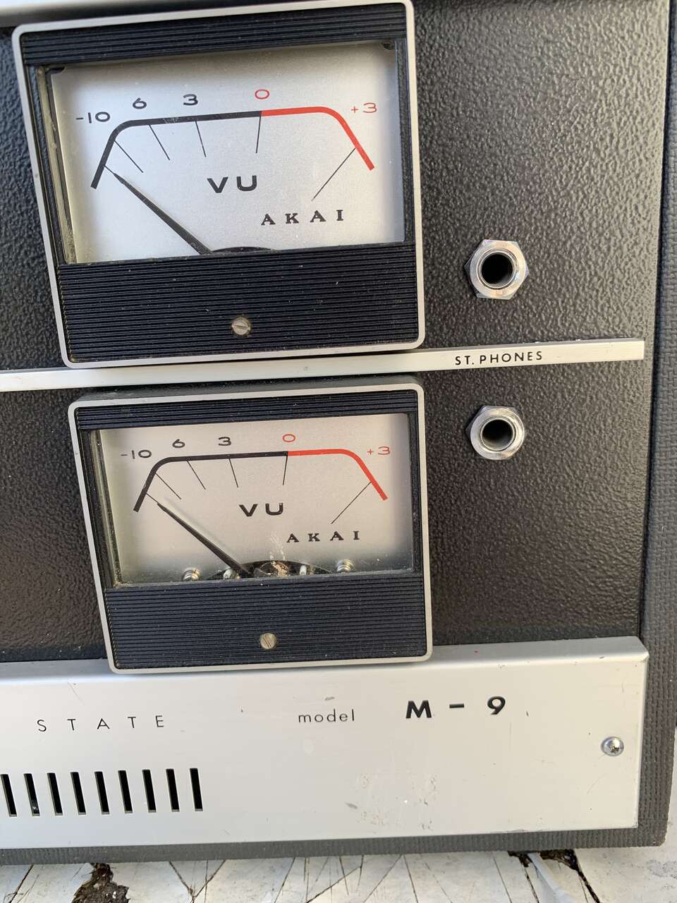 Vintage circa 1960s Akai M9 reel to reel 7.5 magnetic tape reels . Has 2 interior speakers however, it would be recommended to connect into other stereo speakers . entersolid-state sound system works, no missing parts or damage case is in pristine condition. Face plate is in pristine condition has been dusted and cleaned inside of the electronic area. Text inquiries to a Isaac 801–9 16–9466 cash only please.
