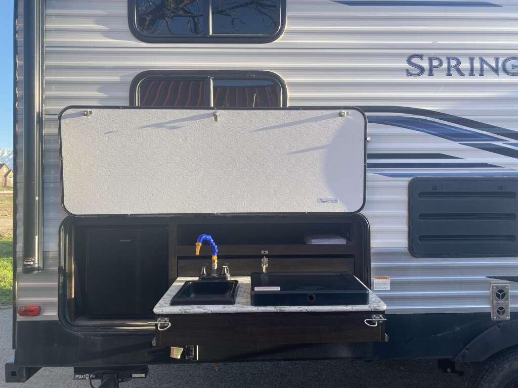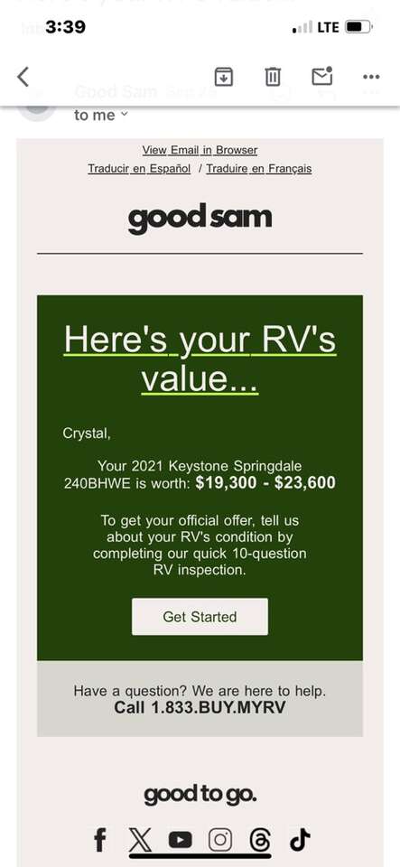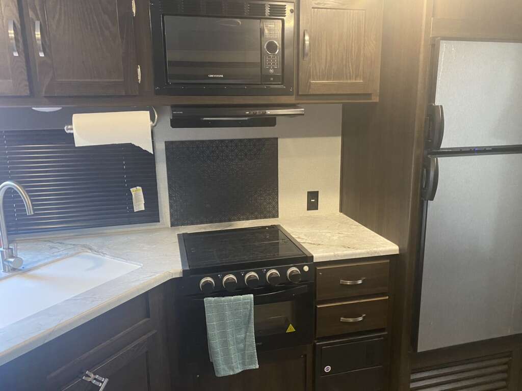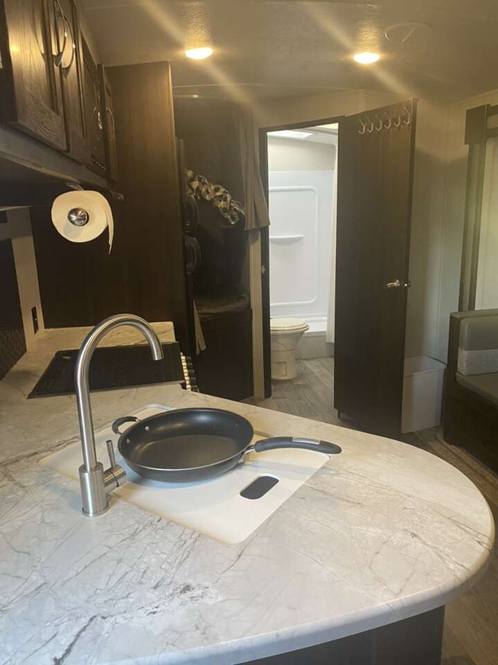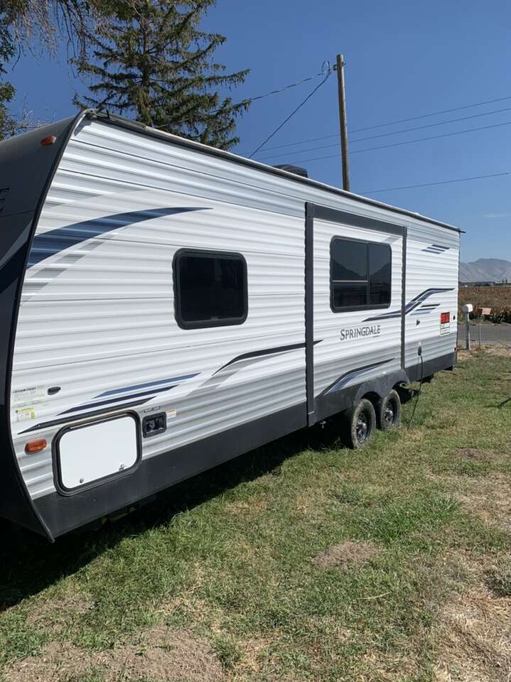 Bought new and only used a handful of times. Still has that brand new smell! Has been winterized and yearly inspection. Comes with 2 propane tanks. Can sell with equalizer hitch for extra cost. Outdoor kitchen. Stereo with outdoor speakers. Lots of storage. 29’ long tongue to bumper. 5980 lbs unloaded dry weight. Selling because we have unexpected medical bills. Only asking for what I owe on it. Text is preferred. NOTE: there is NO fireplace. I could not find a pic of the floor plan without. It is storage instead.