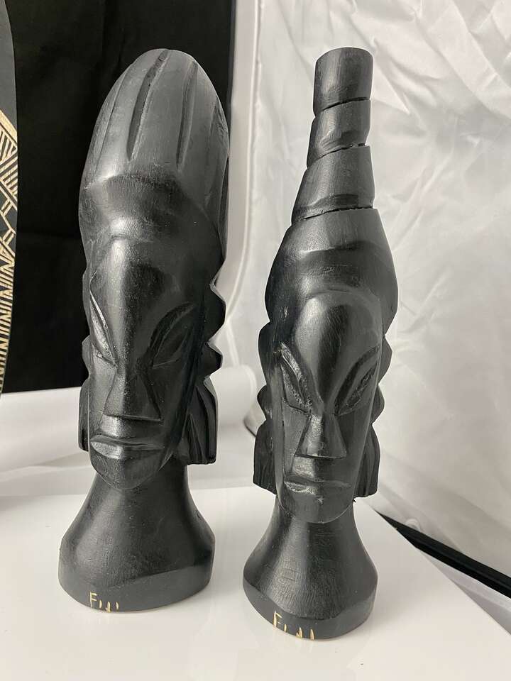 Like New - Genuine Hand Carved Wood from Fiji - Ebony Wood Couple - LG MASK - Moana Wood - C PIX. These are New Zealand wood decorations awesome and prices vary, see all photos for comparison items. Each items value is over $100 but I would part with them all as a group for $250. NOW $150. I have another mask listing at $35 but I would include it with this group for an additional $30. Great deal for Authentic Art from Fiji.