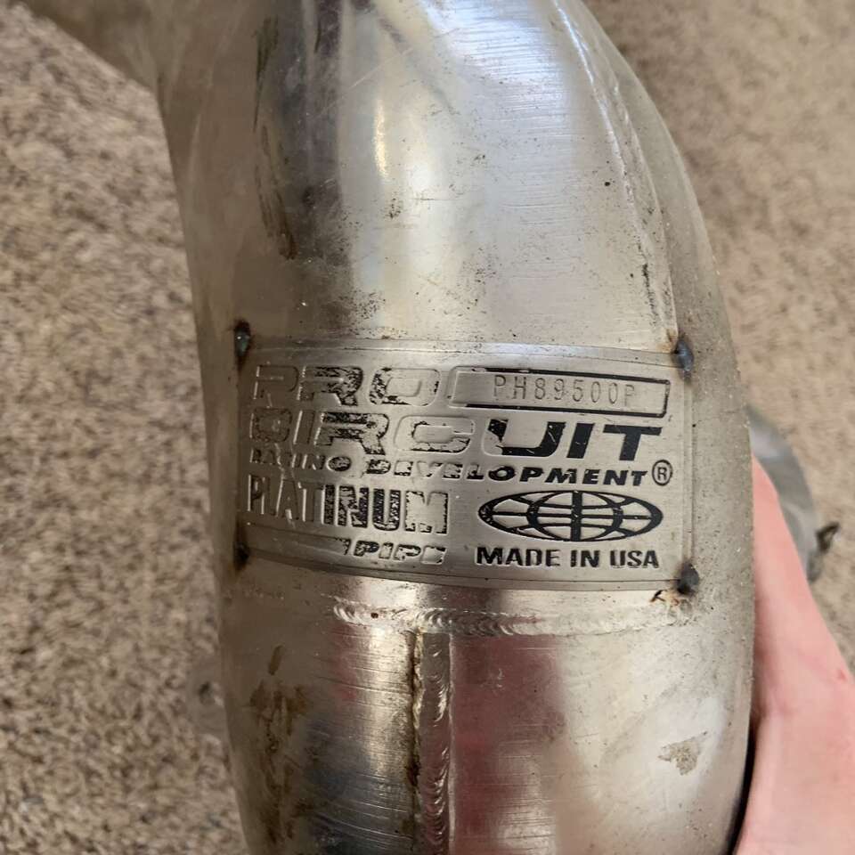PH89500 Pro Circuit Pipe Honda CR500R 1989 1990. I’m selling it as part of my father in laws estate. Pipe comes as is and does have a dent as shown in the photos please ask all questions before purchasing
