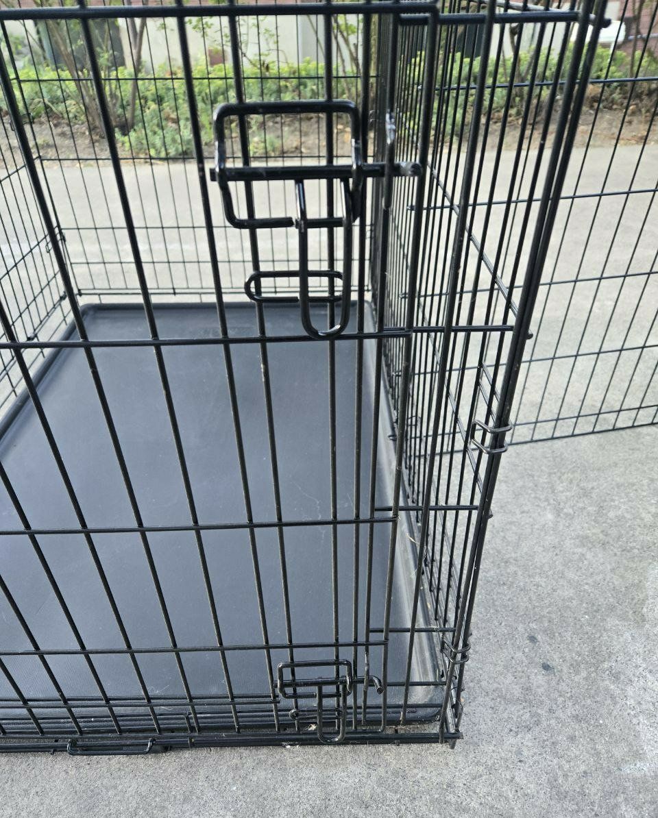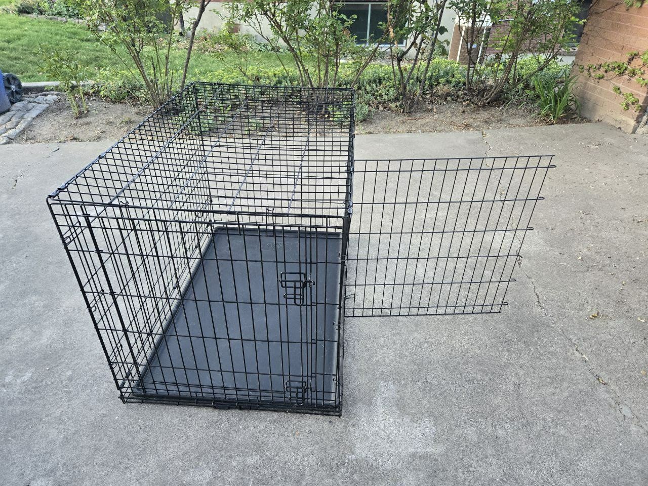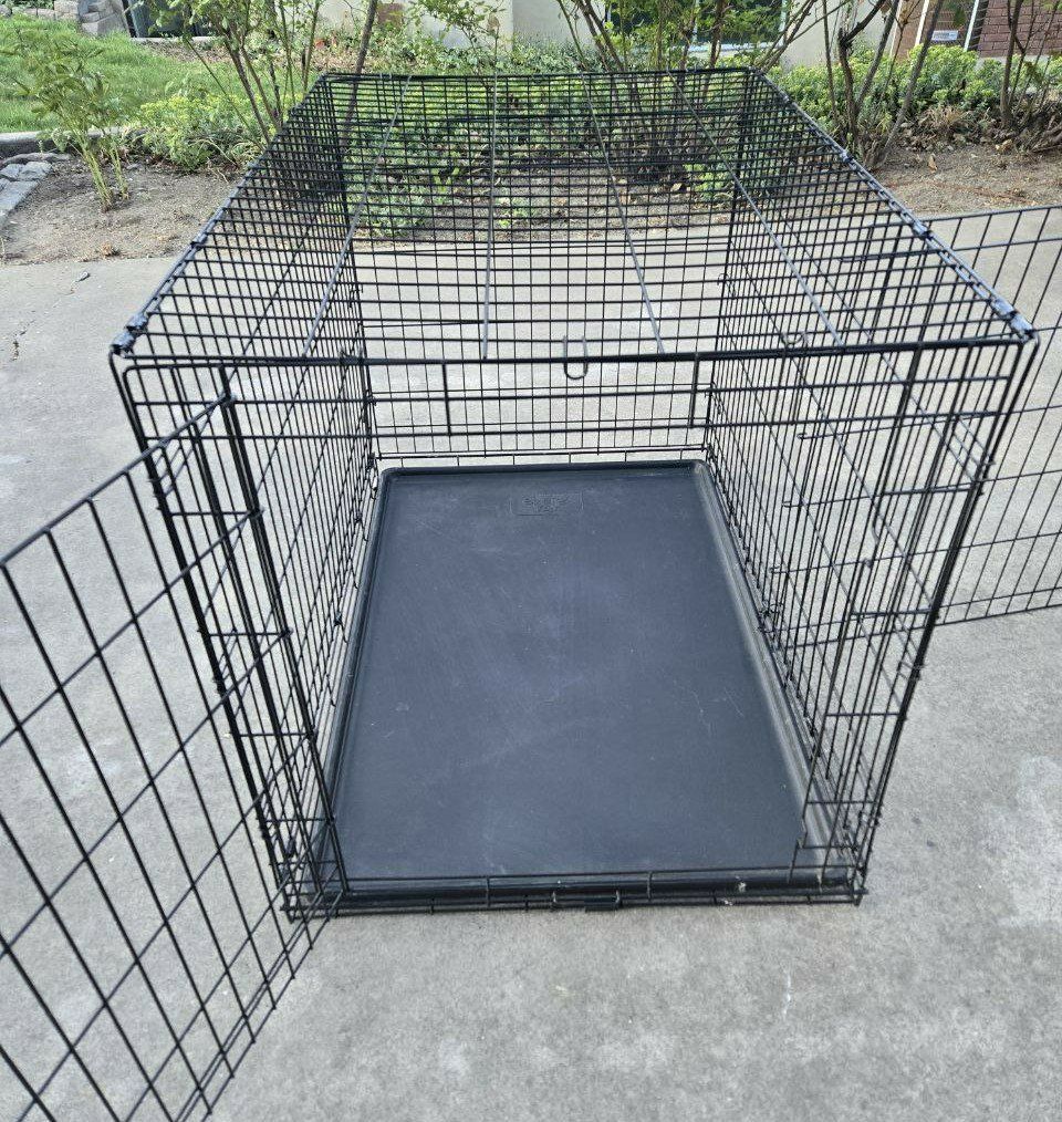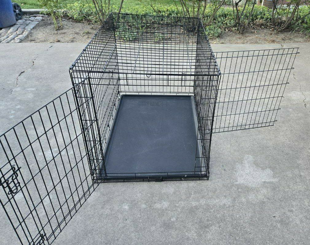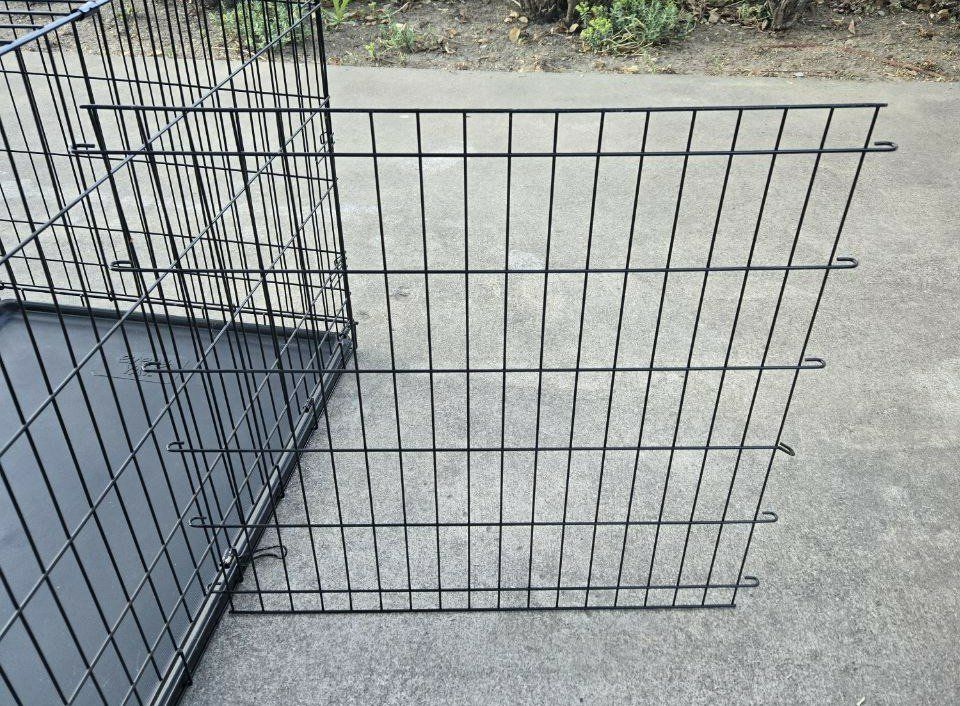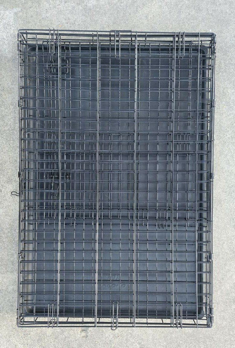 VenmoNice 42 Inch Extra Large Every Yay metal dog kennel/crate/cage. Has an easy lift and lock down door to keep your pet in. Comes with a removable puppy divider to use in the cage as your puppy grows. Has a pull-out plastic tray that is easy to clean up after your pet. Collapses down to easily carry and use for traveling with your pet. Great pet crate/carrier/kennel/cage for your dog or other pet. Metal dog crate dimensions: Length 42" Width 28.5" Height 30.5”