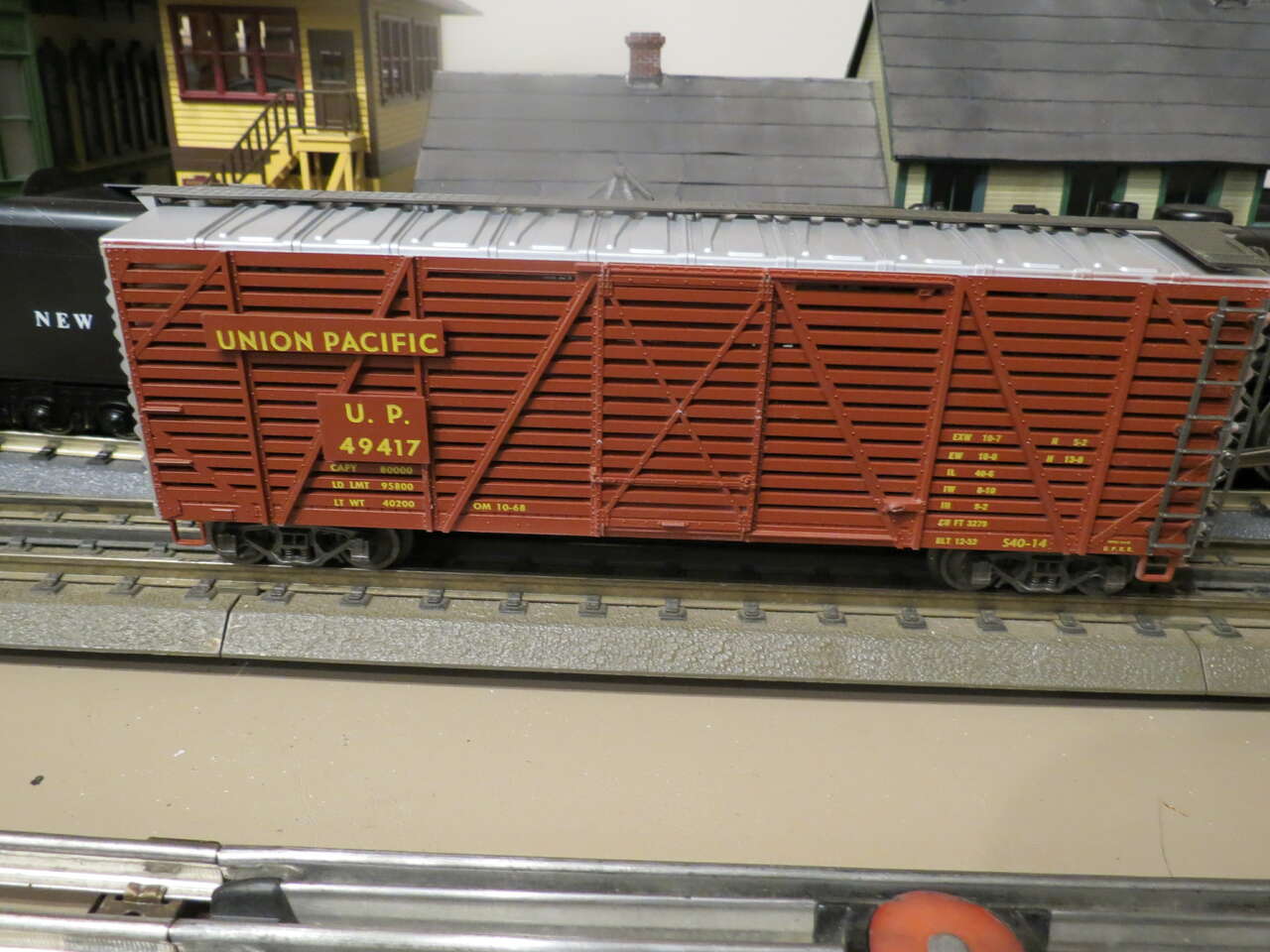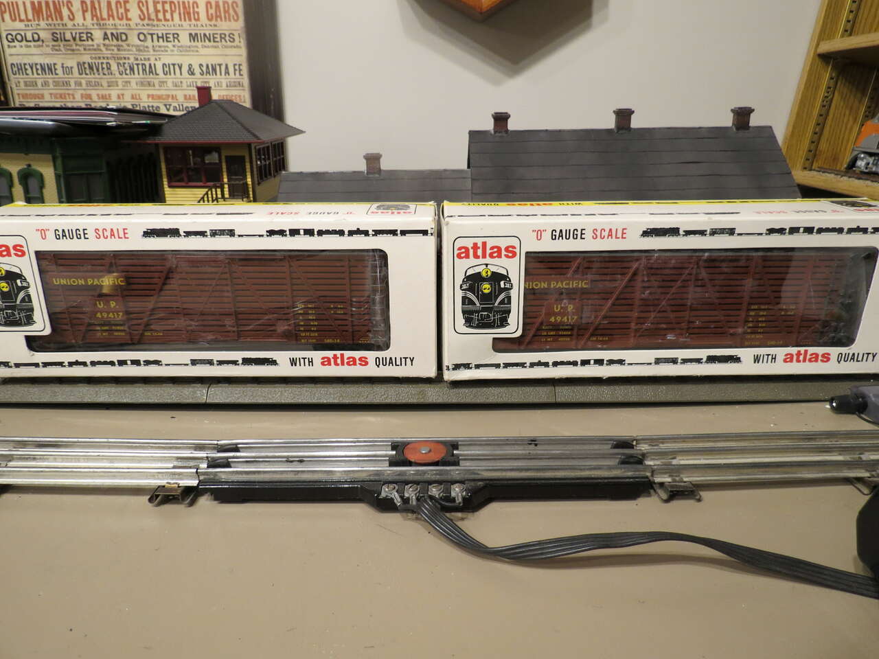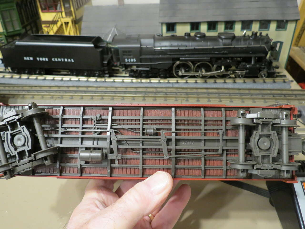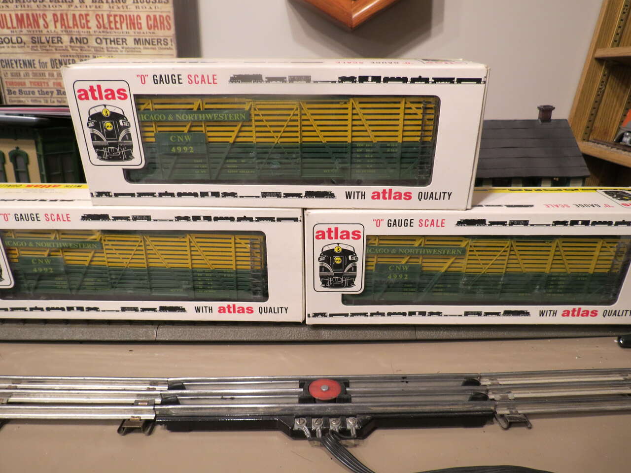 These are Lionel Trains compatible Atlas Made O scale proportion cars- vintage 1970's. Made in Austria, highly detailed, couple up with Lionel rolling stock and roll on Lionel 3 rail track. Unrun, new in boxes. The stock cars are "see thru" and look fantastic. Various road names so you can make up a nice train. 15 cars total @20.00 each.. group purchase. Single sale @ 23.00 each. Background buildings and Steam Engine are not for sale and not included in this listing.