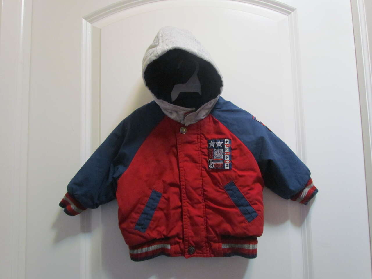 $5 Baby/Toddler Gear Pro/Sport Action Red/Navy/Grey Winter Coat Size 12 Mo. - Good pre-owned condition.