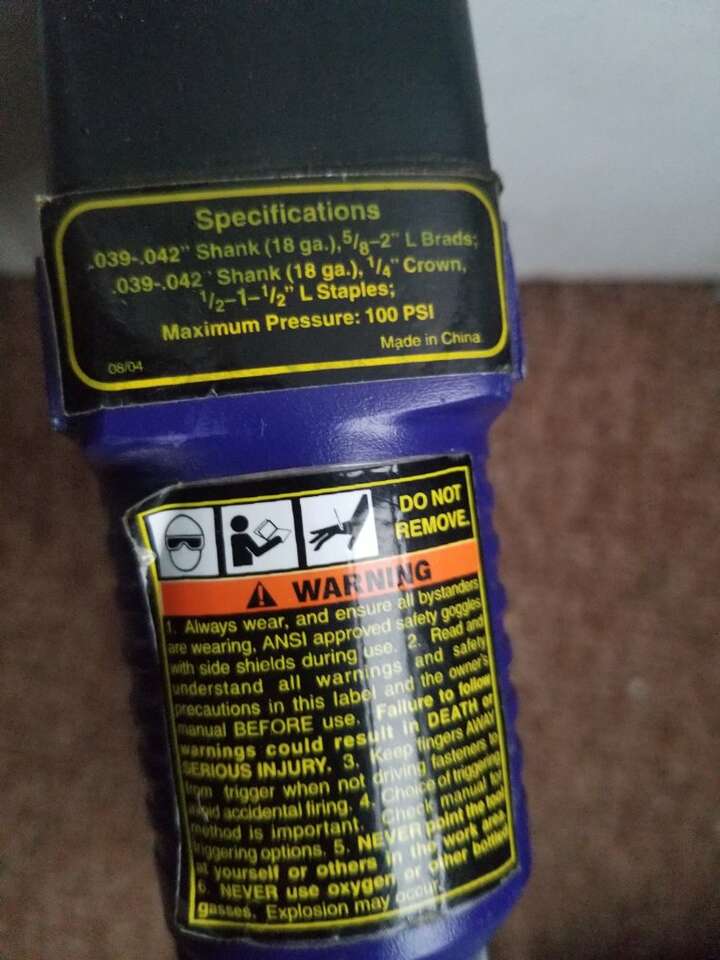 Central Pneumatic Nail Gun in a Carring Box.