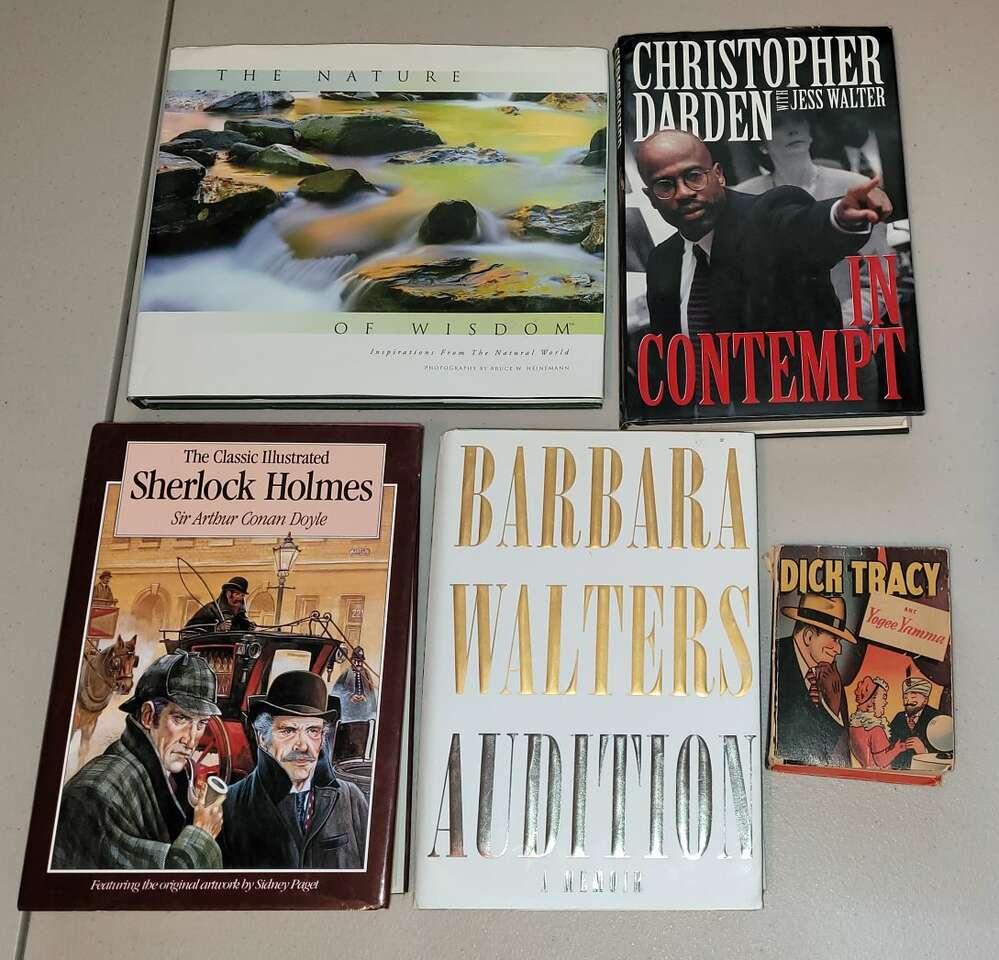 I have 5 books that are in very good to good condition. Four of the books have paper covers that do have minimal wrinkles and marks. The Dick Tracy book has more wear and tear. The Nature of Wisdom - $5 In Contempt (1st Edition)- $5 Barbara Walter's Audition- $5 Sherlock Holmes - $10 Dick Tracy - $15 Cash or Venmo. TEXT 559-707-5899. Thanks for looking!