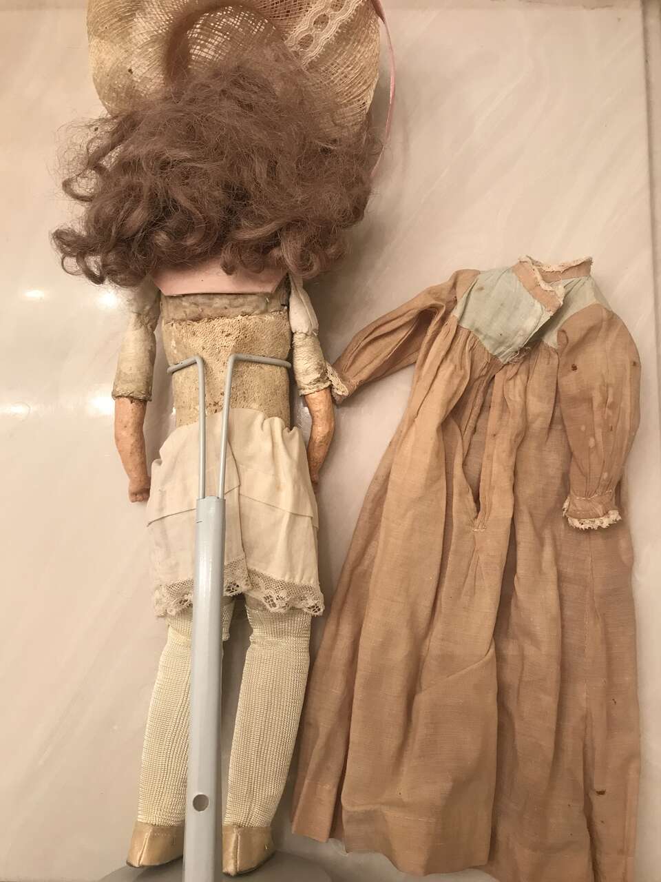 possibly some of the clothing is antique though the dress has holes and stains