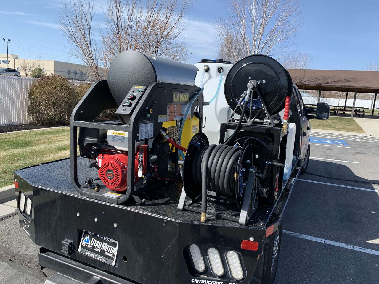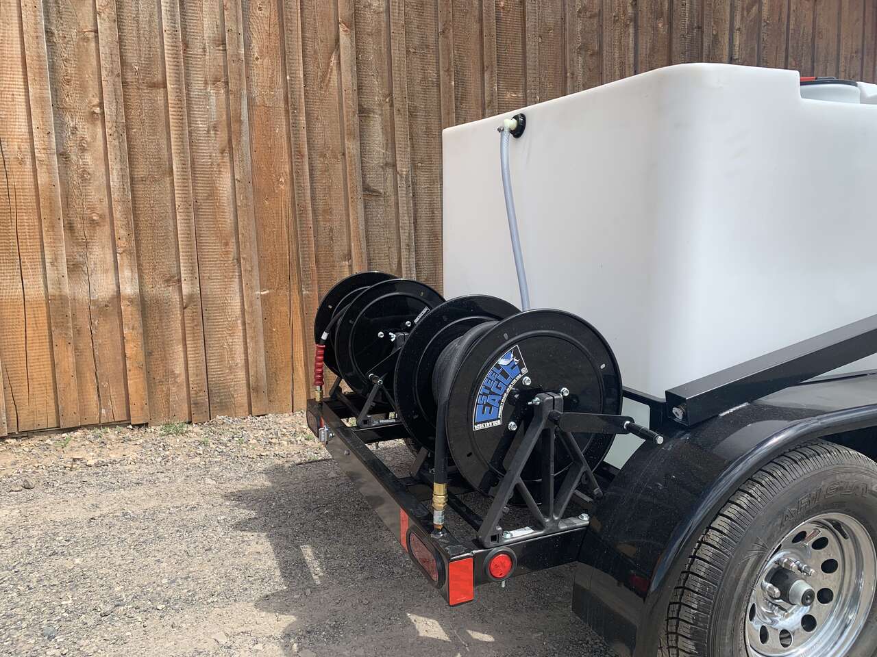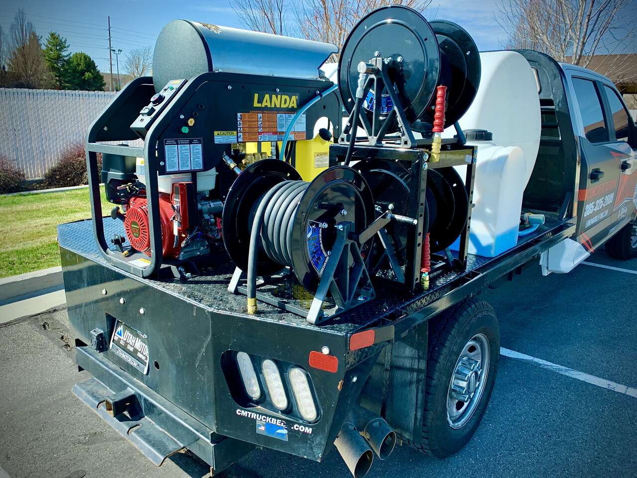 Available with 200, 330 or 525 Gallon Water Tank, 2 Hose Reels (Pressure Hose and Garden Hose), Antifreeze System, Chemical 5-Gal Storage and All Plumbing.