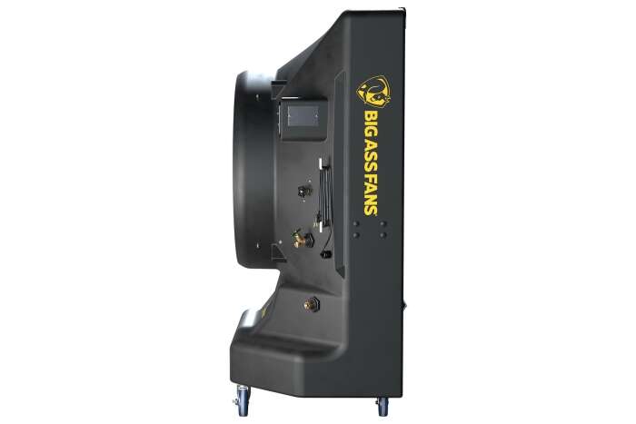 Big Ass Fans Cold Front 400 Outdoor Rated Evaporative Cooler 3600 Sq. Ft. Coverage Variable Speed F-EV1-3601 List price $4299 Your price $3499 Freight TBD I am in Utah county Most days. I Can deliver. Coverage for areas up to 3,000 sq. ft. Portable design with locking swivel casters Virtually silent direct-drive motor 36-inch fan 8-inch cooling media Provides 33% greater cooling than similarly sized competitor models. Media is chemically treated and coated in a thermosetting resin to resist the growth of algae and mold, hold up to frequent cleanings, and prevent dirt and other particles from penetrating into the substrate. Accepts standard garden hose 46-gallon water reservoir supports up to 10-hours of standalone operation Variable-speed controls that allow you to control the speed of the fans.