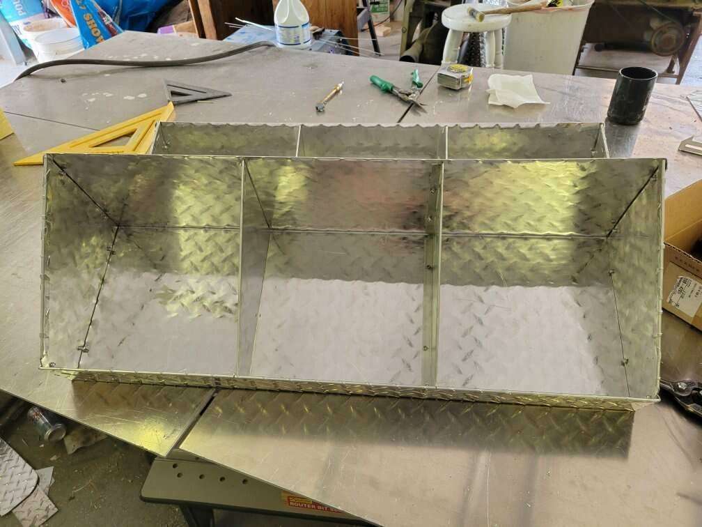 Diamond plate aluminum Made to hold gas cans