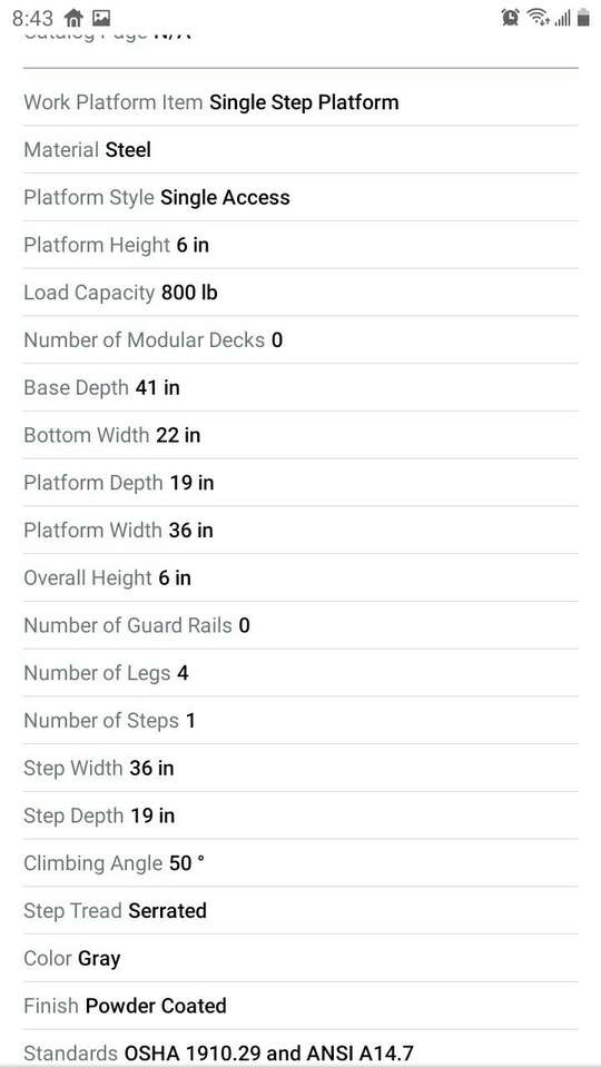 24x36 one step 6" cotterman work platform 800 lb capacity