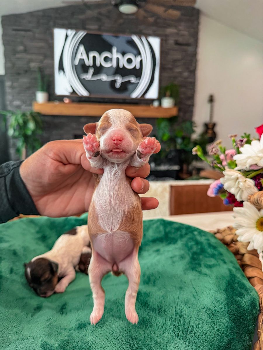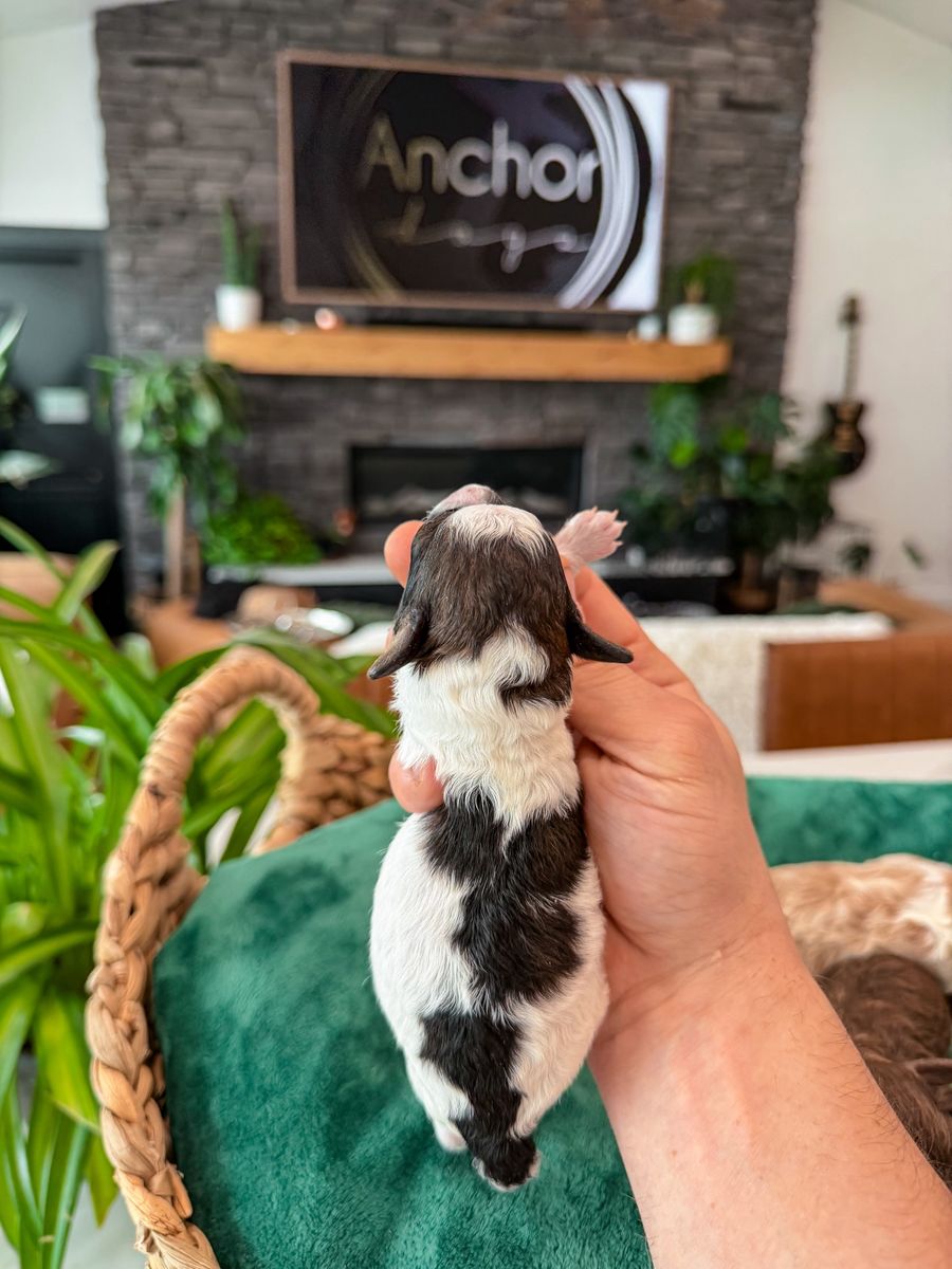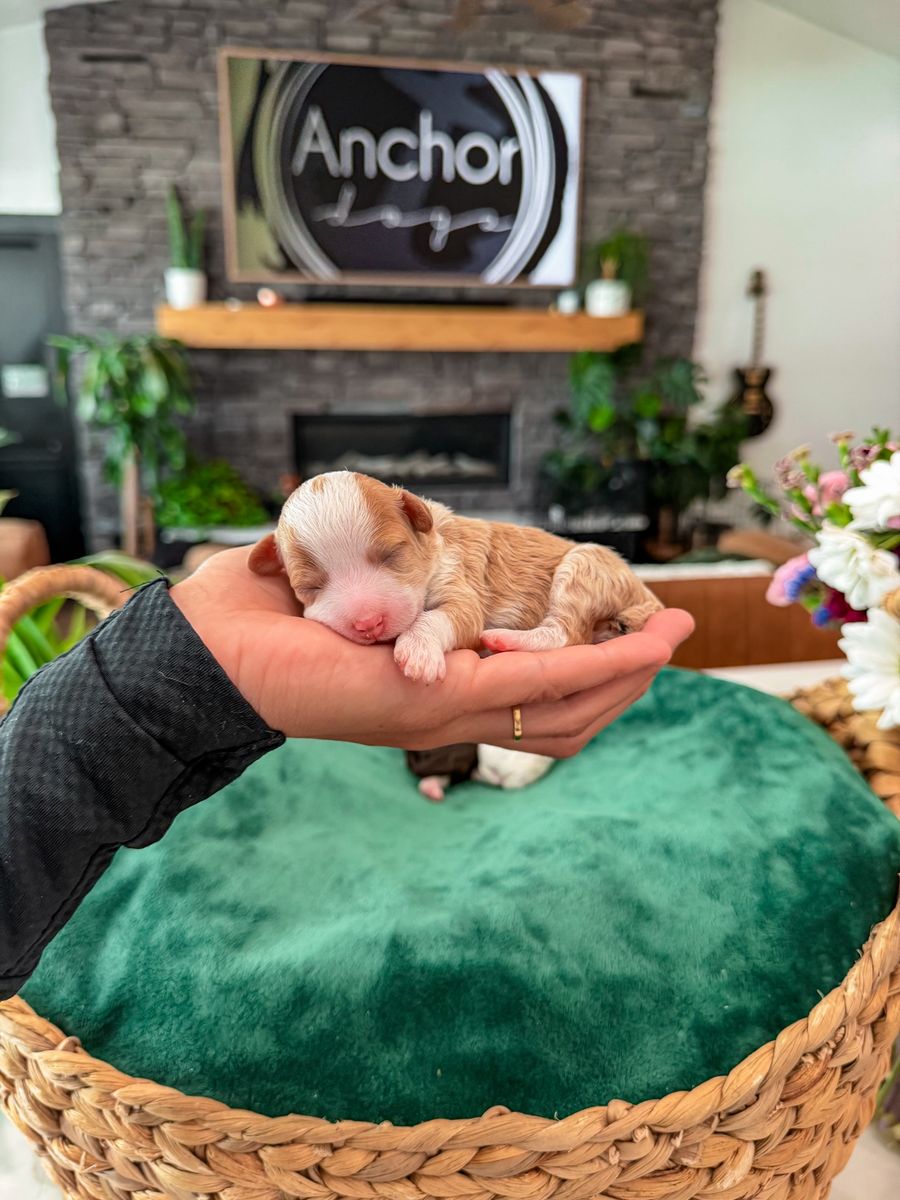 The Details: • F1 Poochon (50/50 Bichon Frise × Poodle) • 8 lbs | 9–10 inches • Stunning red tuxedo coat – soft, straight-to-wavy texture • Clear genetics • Incredible temperament – sweet, gentle, and well-mannered