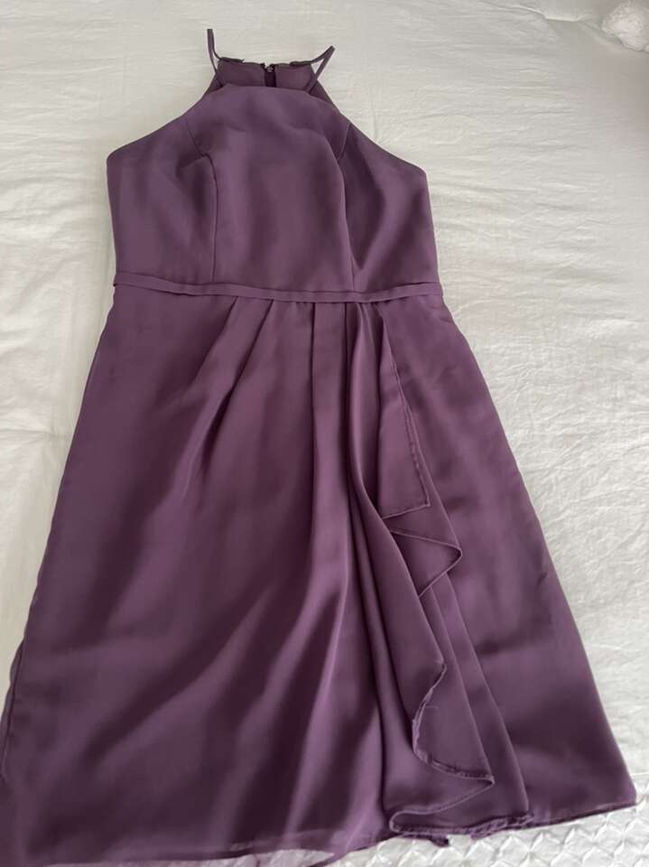 Long gown was cut short; high neck chiffon dress with cascade on the side.