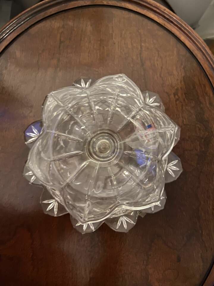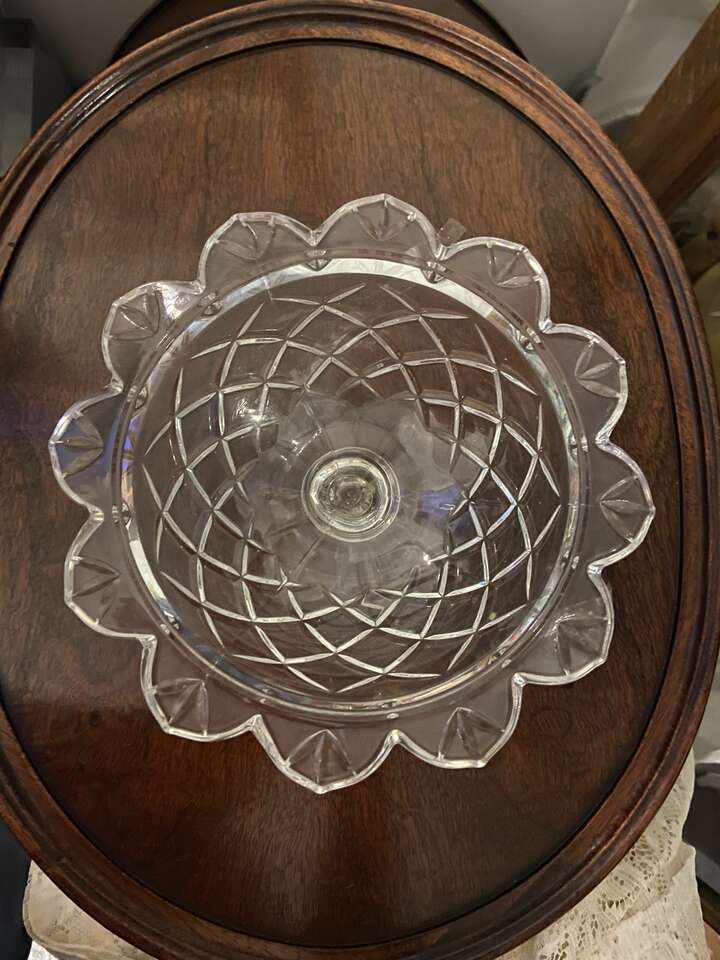 VenmoBeautiful, Vintage, Polonia, Lead Crystal, footed bowl. Made in Poland. Dresses up any table or counter and is a lovely addition to your collection. The edge of the compote as well as the base is shaped like flower petals. The criss cross diamond pattern of the bowl adds shine and light play. It is perfect for, Cranberry Sauce, candies, potpourri, decorative soaps, trinkets, cootton balls.