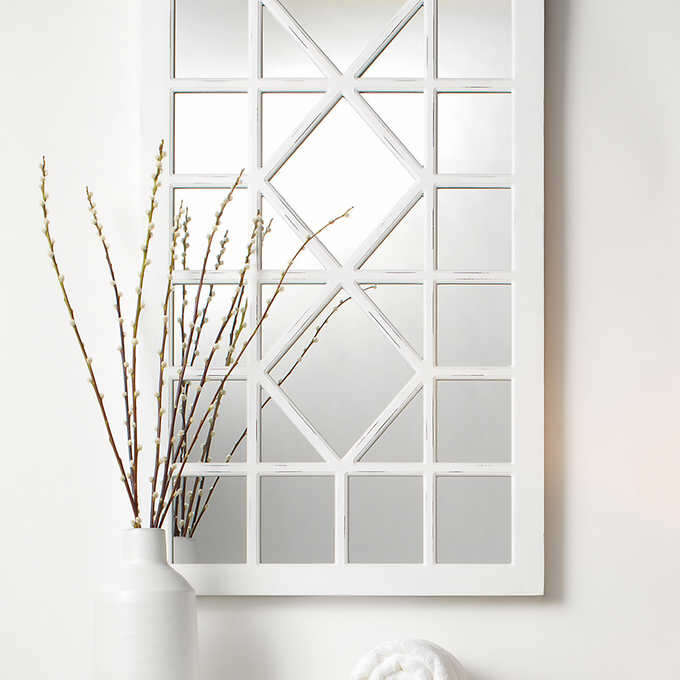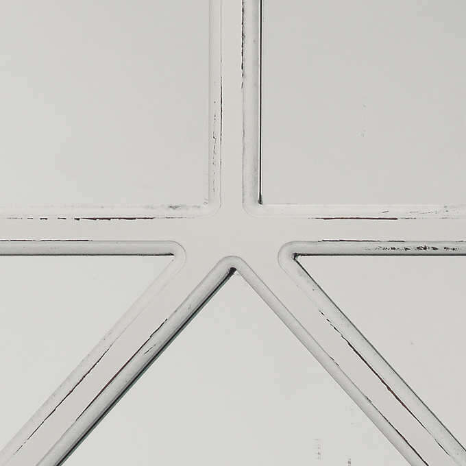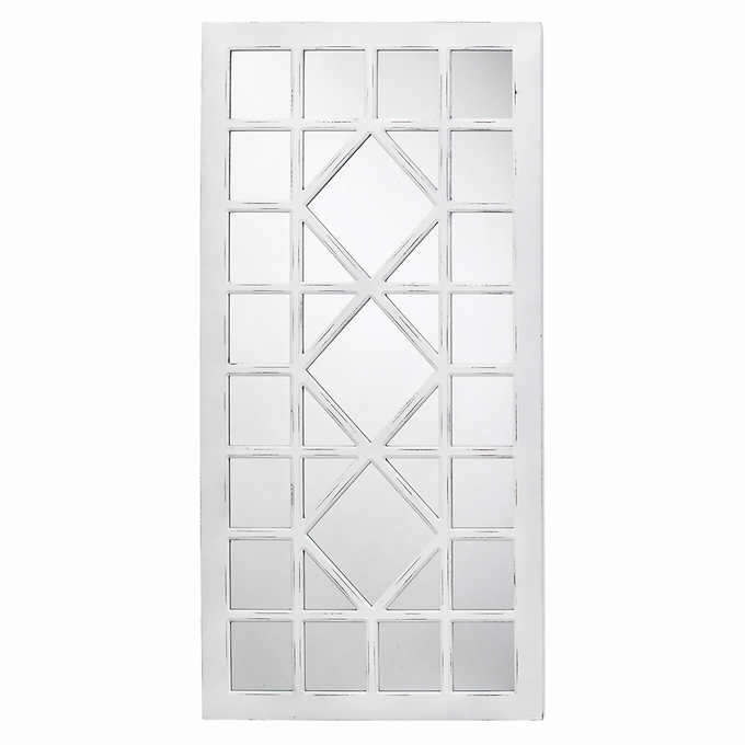 This pictorial mirror has a true belonging in any space of any room. The distressed ivory frame portrays a splendor of dimensions in a rustic fusion. Its versatility allows it to be hung horizontally or vertically and will prove to be an eye-catching addition to any wall.