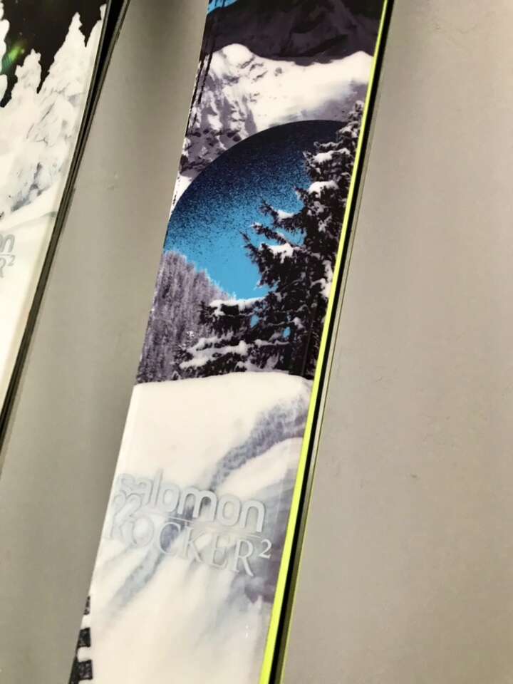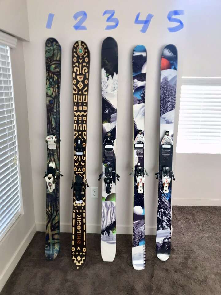 A couple of the skis are SALOMON, the SKI-LOGIC pair has a cool mother of pearl inlay, the 4FRNT ones have cool art.