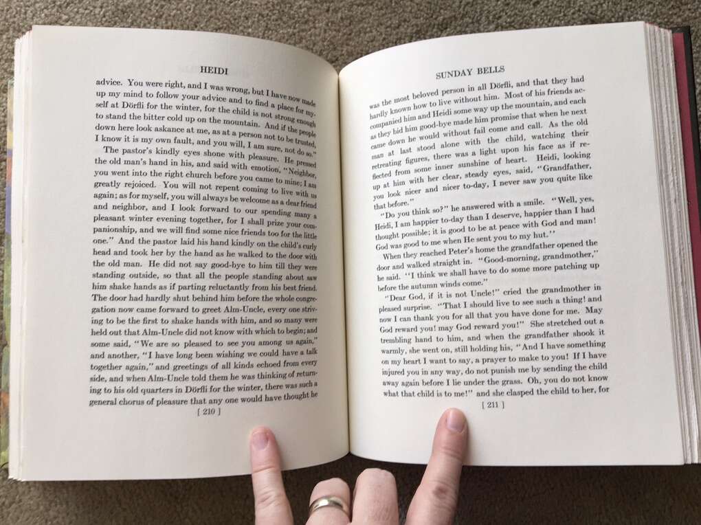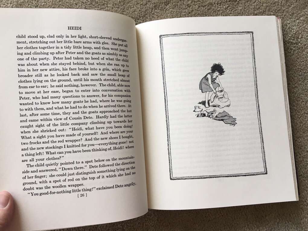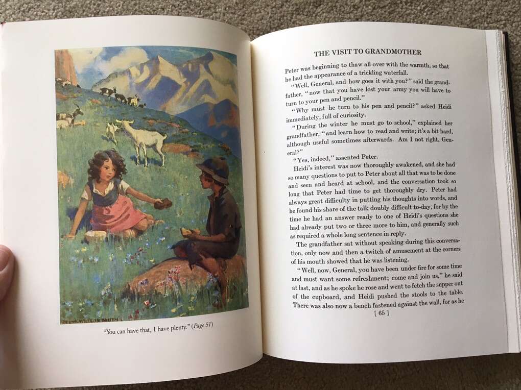 Vintage Heidi, by Johanna Spyri, illustrated by Jessie Willcox Smith. Beautiful, large, illustrated hardback edition of the beloved story. Children’s Classics, 1986, 349 pages. Nearly perfect condition. No tears, marks, or damage. Text only. Cash or Venmo.