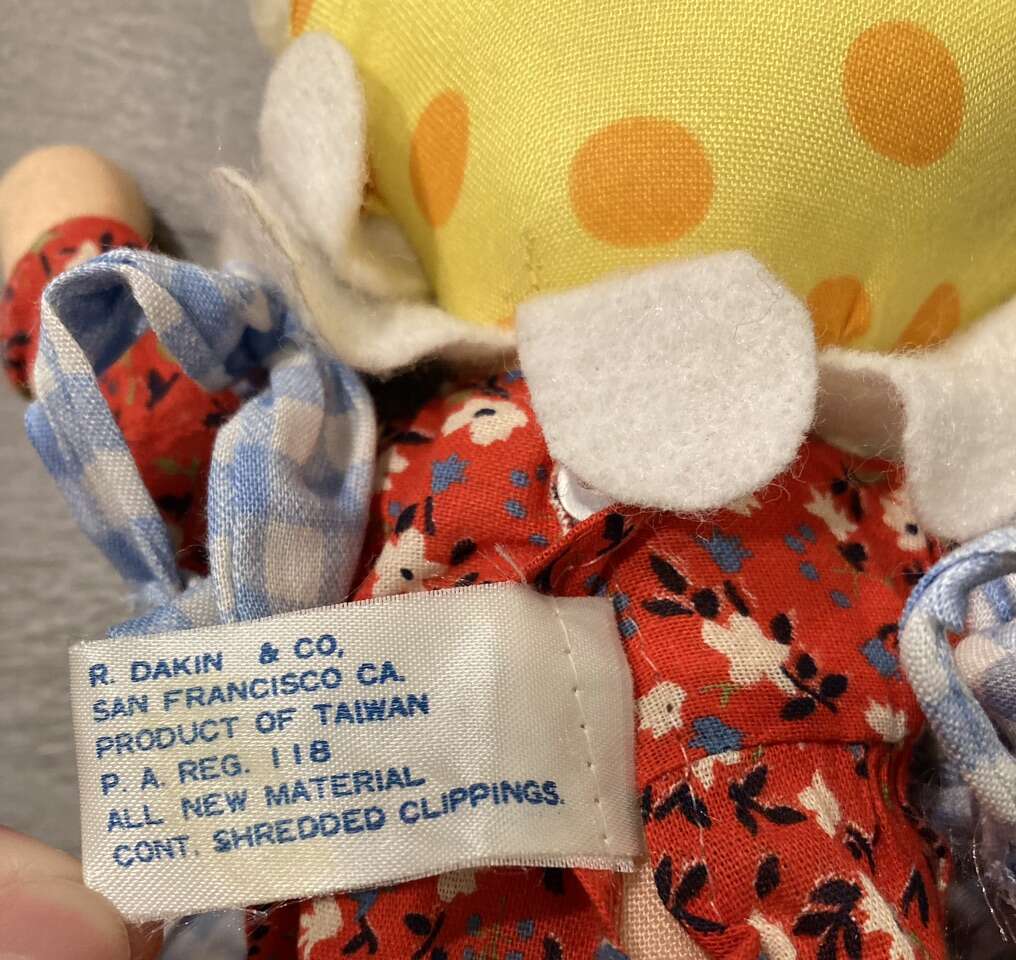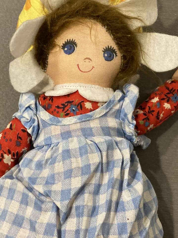 VenmoAbout 12” tall. Cute rag doll from the 1970s. The pants, dress and doll body are all in good shape. The apron has a tear and a few small holes. The glue on one shoe strap is loose. From a smoke/pet free home. Pick up in Murray.