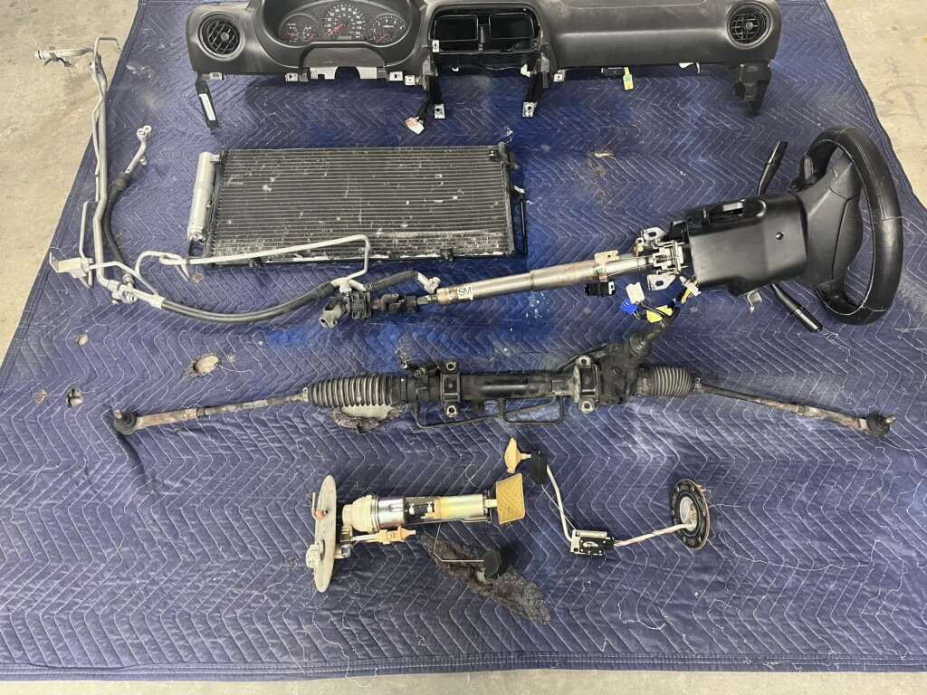 SOLD front crash bar rear crash bar. SOLD Radiator support (06’ 07’) Complete steering column with key. 3 spoke wheel. Dash with passenger air bag. SOLD dash clock SOLD Instrument cluster SOLD Rack and pinion. AC lines and condenser. Fuel pump assembly and sending unit. Misc wire harness, fuse and relay