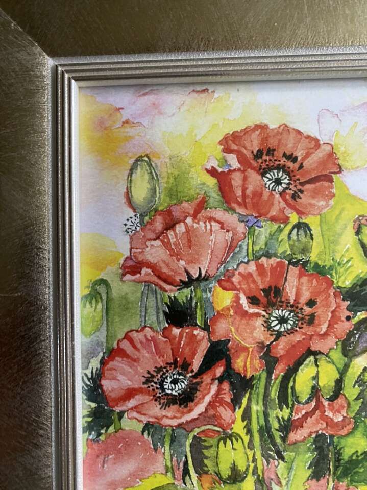 Poppies, Watercolors Painting on Paper Signed 5x7