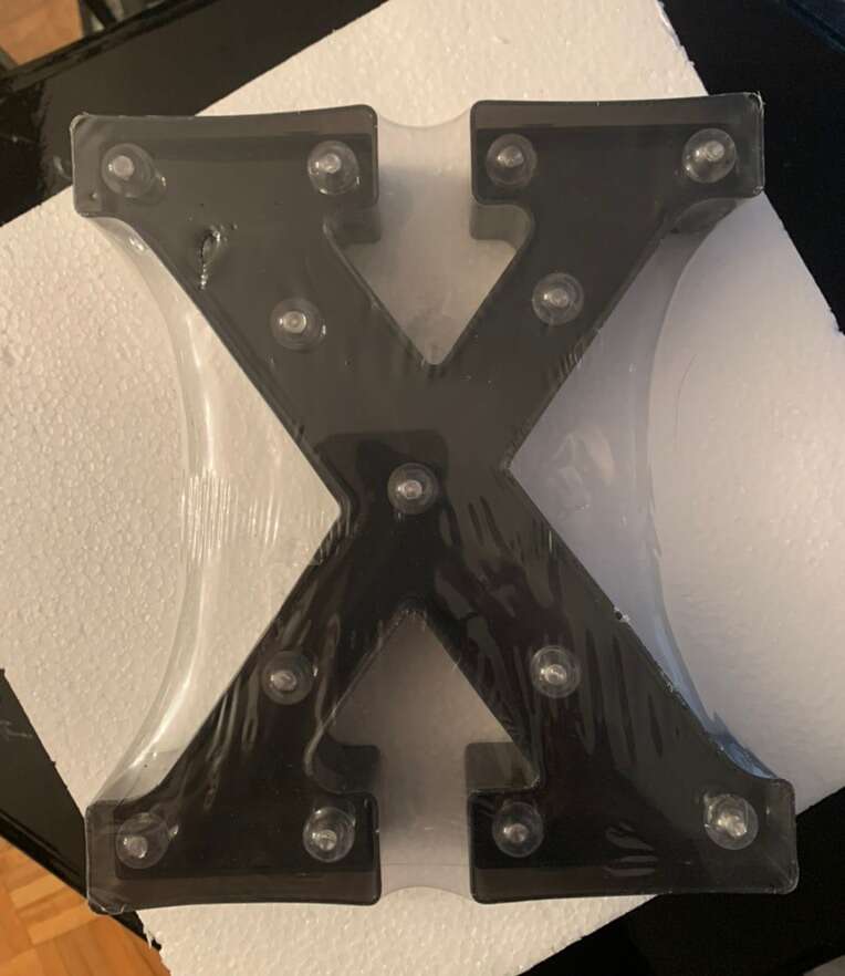 VenmoCool plastic black LED letter X. Can stand or hang. Battery operated marquee. Brand new sealed in plastic. 9 in high. Have 2 of them. $7.00 dollars each.