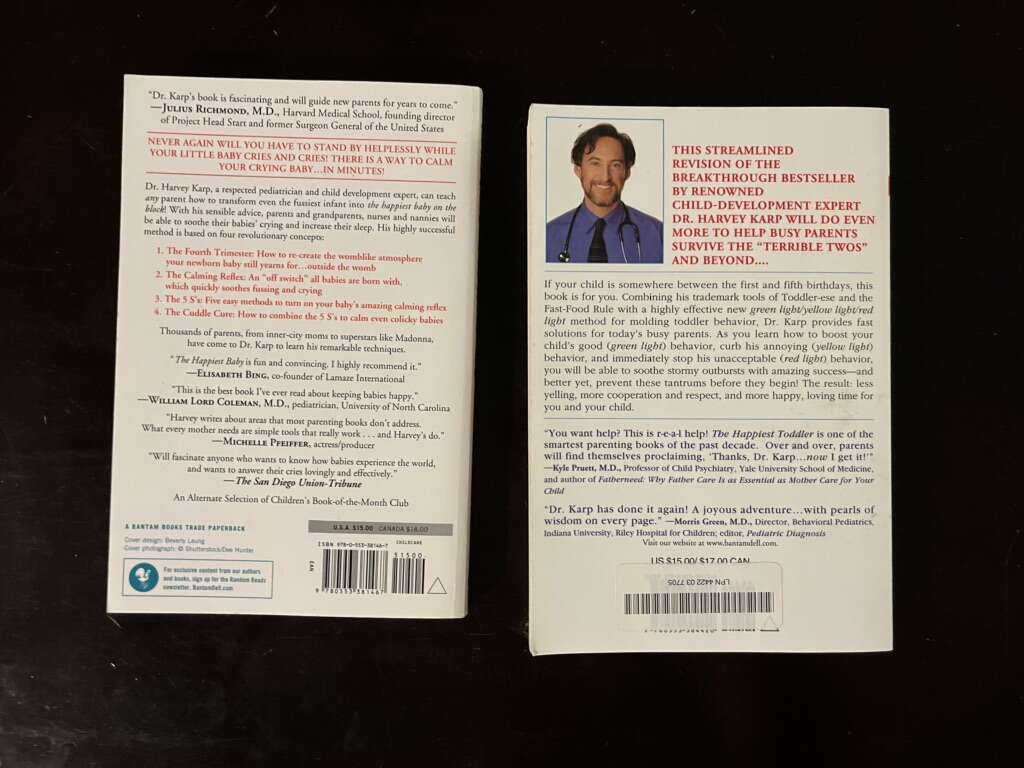 Happiest Baby on the Block and Happiest Toddler in the Block books for parenting. Sells new for $14-$16 each. Asking $3/ea.