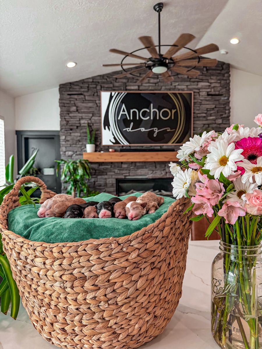 This pairing produced 7 gorgeous puppies on April 1st, and we are so excited to watch these babies grow.