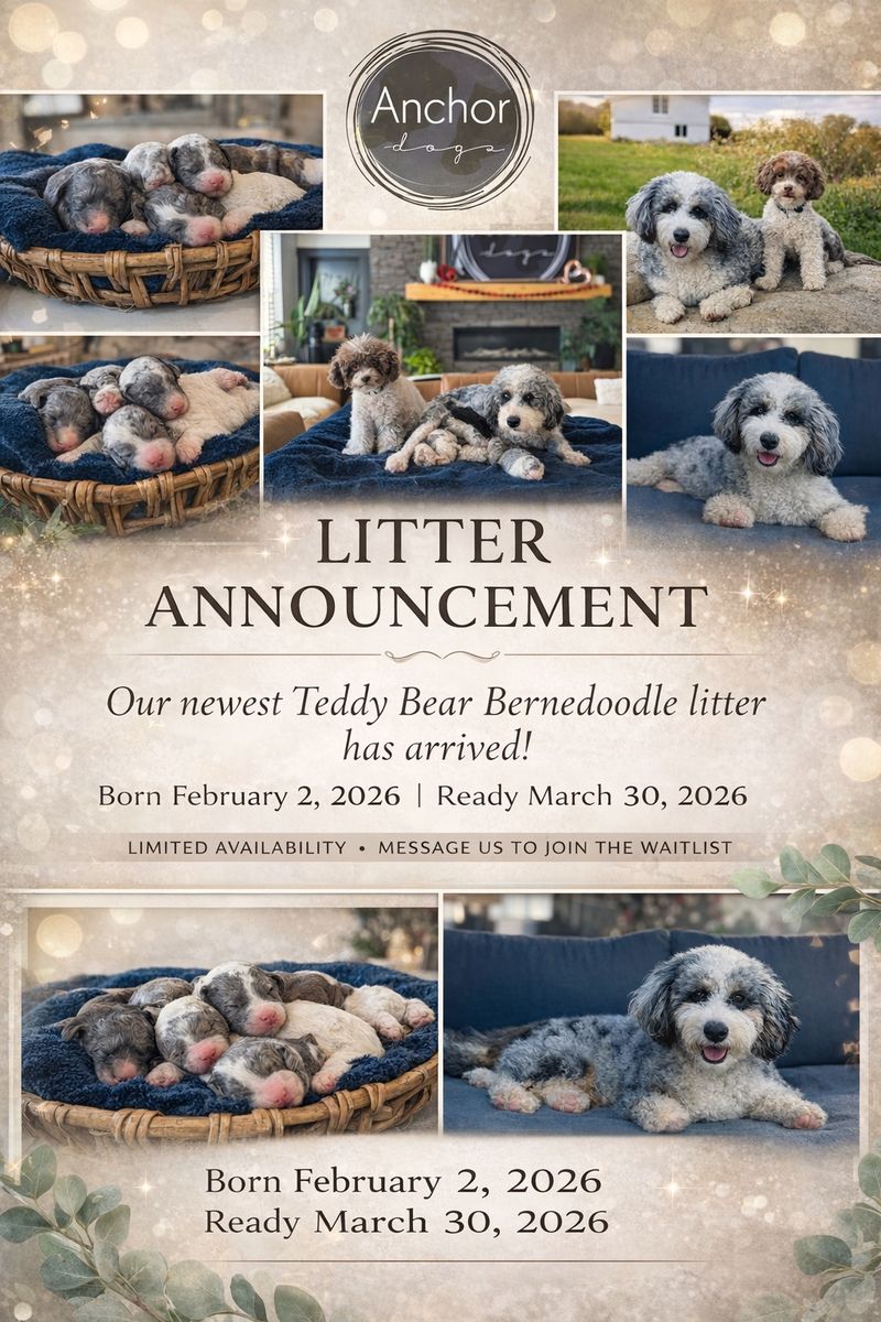 ApplePay•teddy bear Bernedoodles •10-15lb adult size •10 year health guarantee •Clean bill of health from the vet ️ •Tails & dew claws (teddy bear bums 🧸 ) •Microchipped •Lifetime breeder support •Potty & crate trained •Puppy gift bags •Health & temperament tested parents • free pet insurance • Raised by professional breeders & trainers •current on vaccines & deworming • Socialized, desensitized & ENS •Records, documents and more !