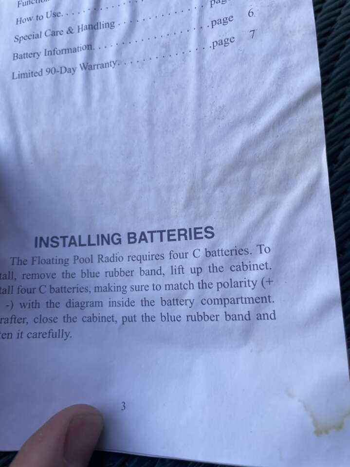 • Waterproof seal keeps batteries dry. Built-in handle lets you take it anywhere you want a radio! • Plenty of volume for even a noisy pool or beach party!