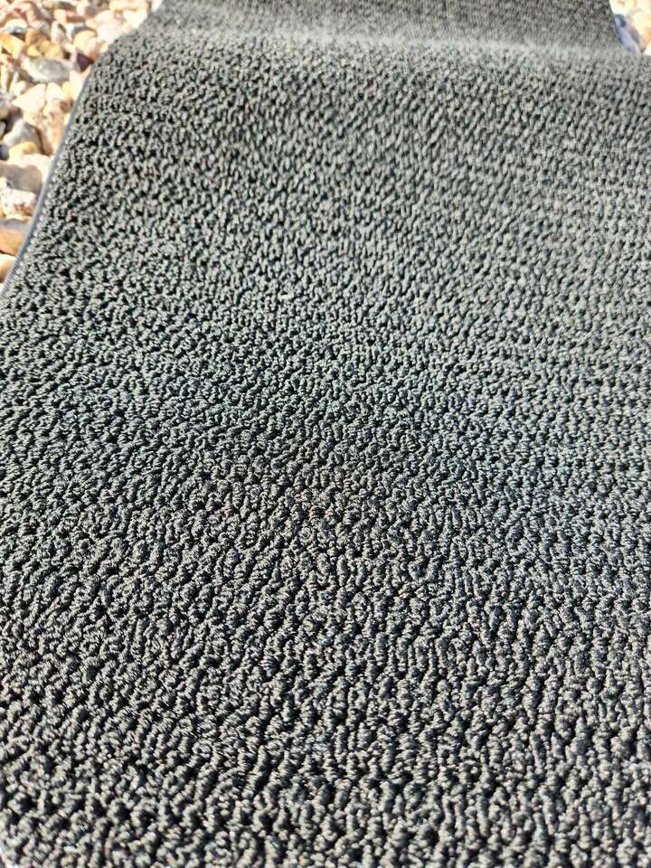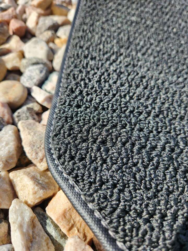 Second-Row One-Piece Premium Carpeted Floor Mat in Jet Black with Dark Titanium Stitching.