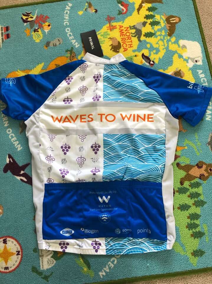 What you’re looking at is a size Medium Unisex Sport Cut Raglan cycling jersey for Bike MS for the year 2022 “Waves to Wine” in brand new condition.