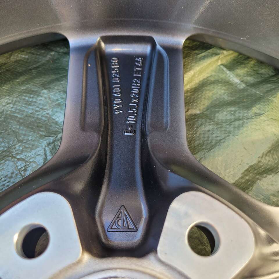 Photograph featured: Direct from the Porsche factory. New. Never on a car. You paid for performance. Get traction performance fitting of your Cayenne with a second set of factory wheels to always have tires matching the season. Winter conditions will be here soon. I will be using my other set of slightly used winter tires as soon as conditions drop below 45 degrees because the softer rubber compound is made for that while the "all season" rubber compromises on that. When cold, all season tire rubber is hard and like plastic, it is low friction and slides around. Is the greater performance of winter tires something you can forgo? Don't want to test the performance of your air bags?How much difference will it make? Technically, none, IF you don't have a collision! Actually, the traction difference in winter is amazing! I choose the extra traction for extra collision avoidance capabilities. I have extra sets of wheels for my three Cayennes because I optimize and don't trouble myself with tire changes on one set of wheels. Optimize as only the tire tread touches the pavement. I'll be selling a Turbo S, so I don't need as many extra wheelsets, though it's so much easier to change wheels than having tires changed for those who only have their one set of wheels. I have a new set of drag radials for street and track performance, too. For economy wheel sets, see my other listings for used Porsche Cayenne Wheels.