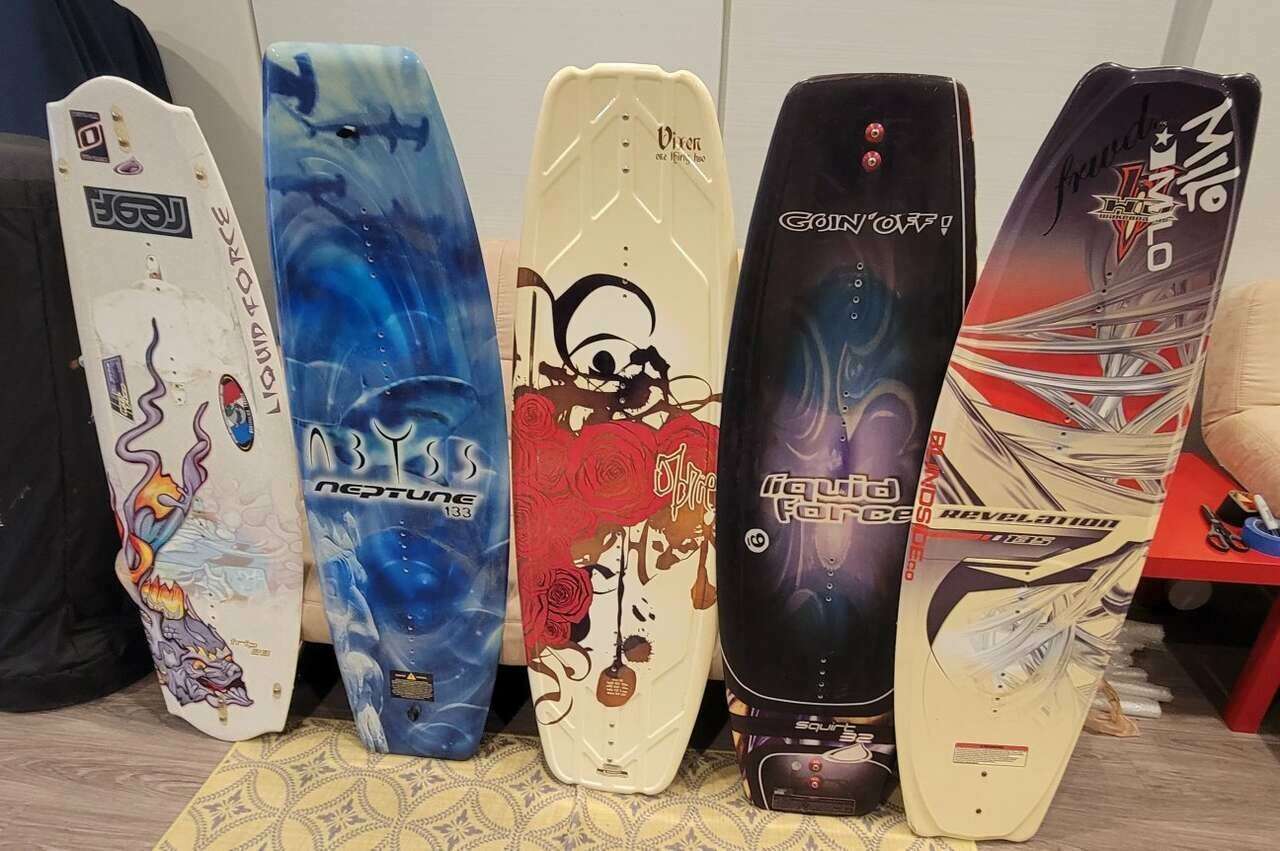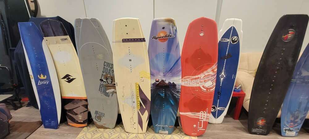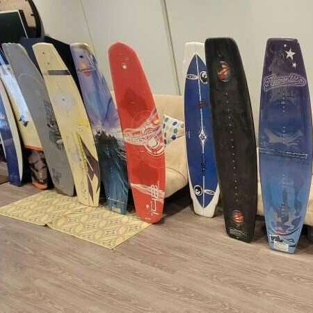 Also have a wake surfboard 64 in tall for $200 shown in the pictures and a power board/kneeboard with rope for $75