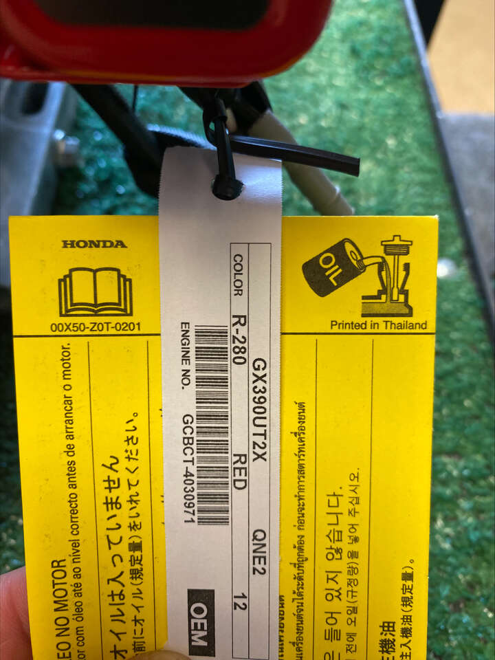 New Honda GX-390UT2X-QNE2 electric start engine, with Honda manufacturer warranty.