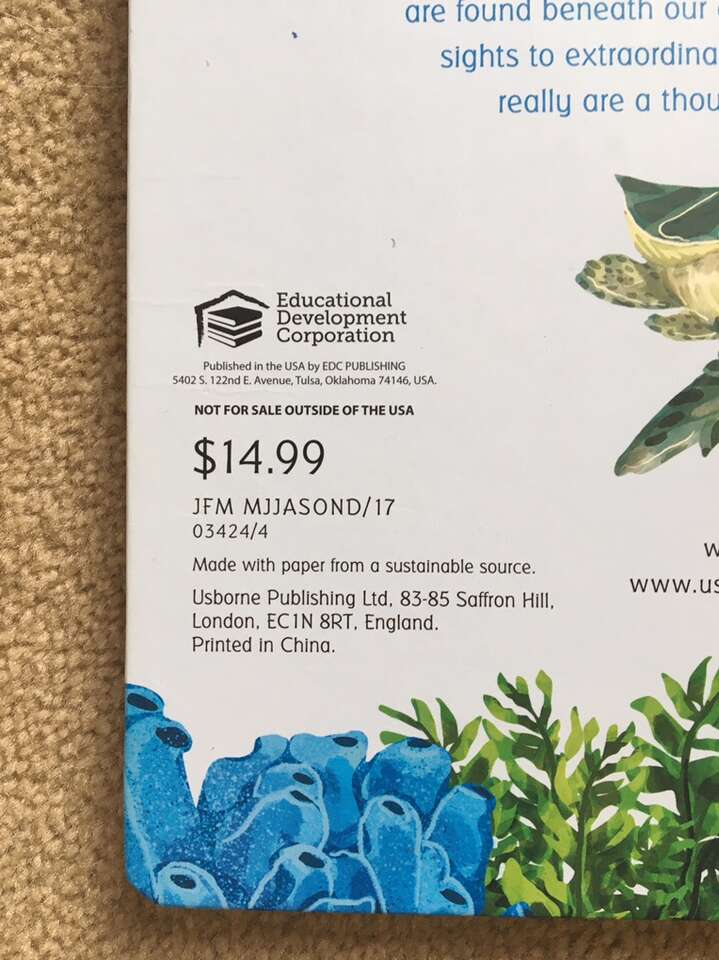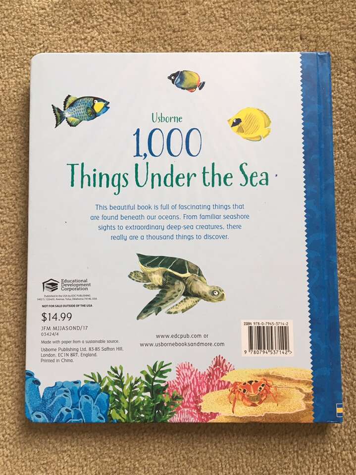 Usborne 1000 Things Under the Sea, illustrated by Nikki Dyson. Gorgeous big hardback with sturdy pages full of informative, colorful pictures. Excellent condition. Text only. Cash or Venmo.