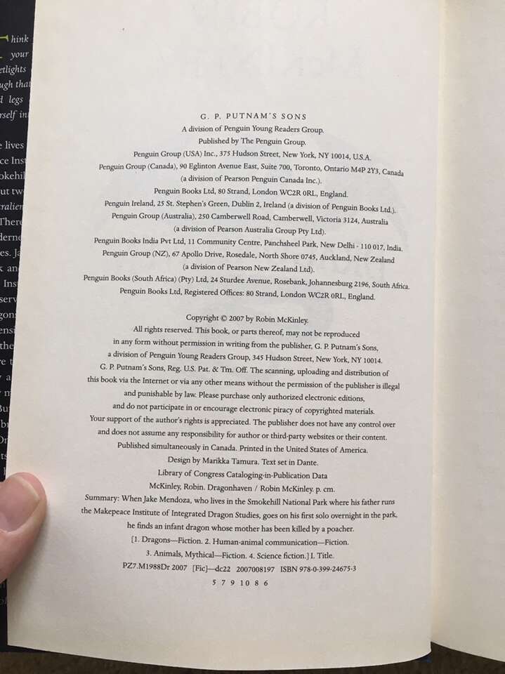 Dragonhaven, by Robin McKinley. Published 2007, 342 pages. YA hardback in excellent condition, including dust jacket. Text only. Cash or Venmo.