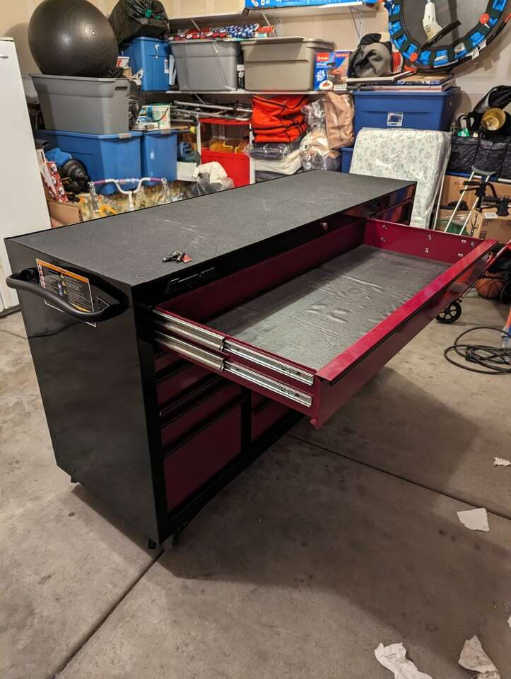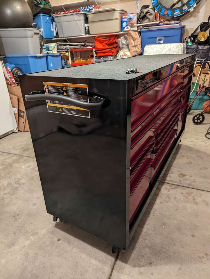 Selling my Snap-On tool box. Had it for a year. It's in great condition. Cranberry red with black trim with both keys. The box is a triple bank with 15 drawers, 1 speed drawer, and power bank to charge electric power tools. Shoot me a message, thanks!