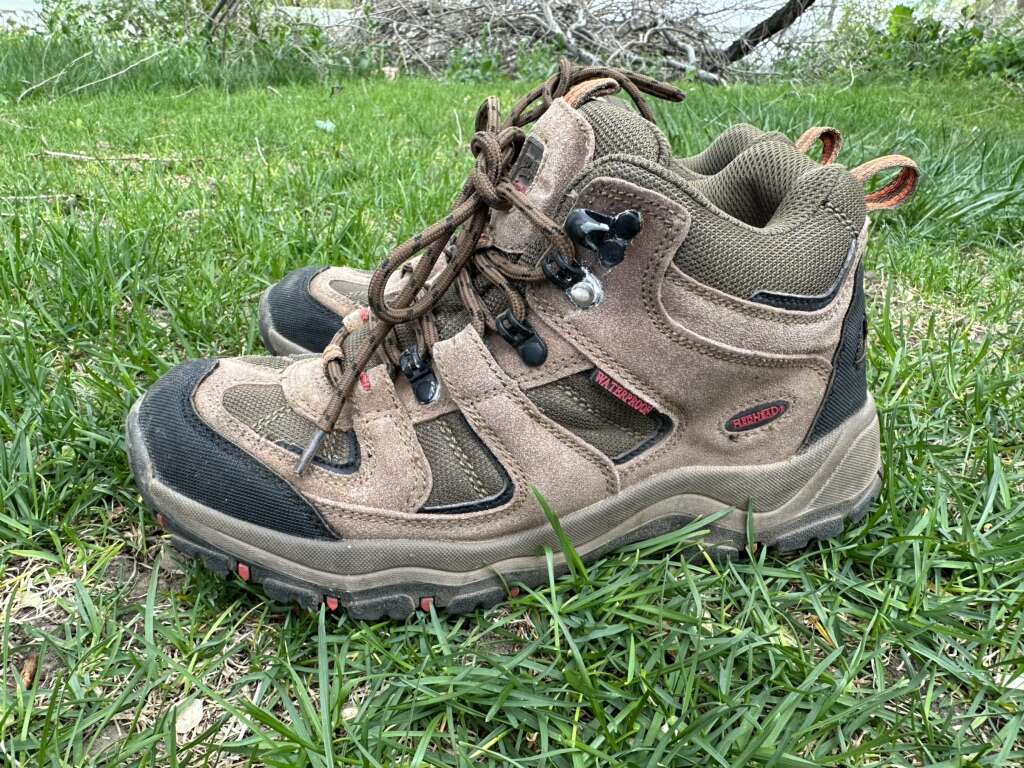 Red Head women’s size 8.5 beige/green with orange trim Waterproof Mid Hiking boots. These are in great condition. See photos for details. I take cash or venmo. Text is best. 801-201-4446.