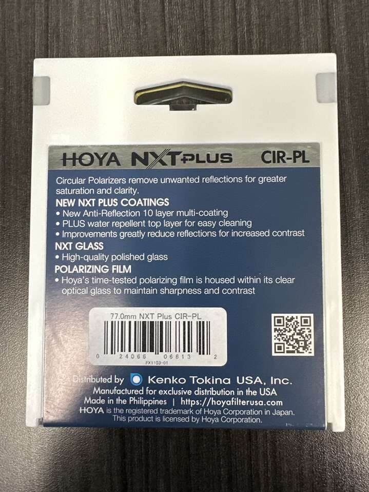 I’m selling brand new Hoya NXT Plus Circular polarizing slim frame glass filter. (CPL) Size 77mm.
