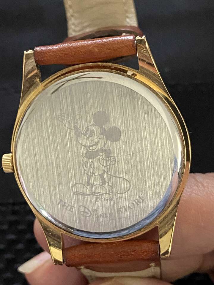 Venmo$20 Price reduction: A beautiful Disney Store Exclusive Snow White and the Seven Dwarfs watch, produced by Pedre. The watch features the Seven Dwarfs marching from their cottage to their mine, and home again with every tick. The dwarfs act as the second hand. The crystal is clear and free of scratches, with very light wear. The case is in good to very good condition. The leather watch band is in very good condition, with light wear and creasing. Battery was changed 2/8/21. The watch runs well and keeps time. Would make a great gift for any fan of Snow White, or a wonderful addition to any Disney collection! A new battery was just installed and it is running and keeping time!