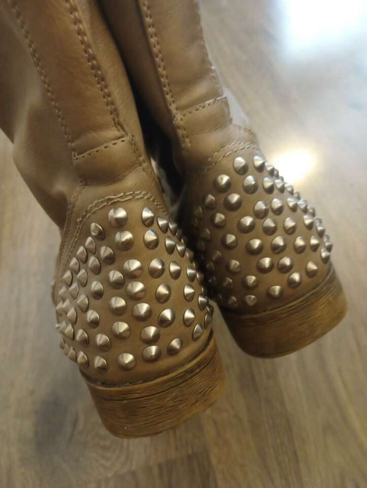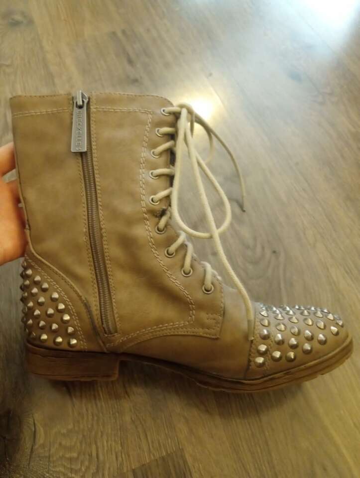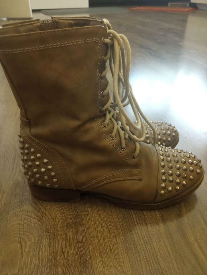 VenmoUsed, tan Studded Boots, size 7. Studs are silver. Zips up and ties. In fair~decent condition with normal signs of wear. From a smoke-free home. $5 cash or Venmo. Will hold with Venmo. Text if interested. Feel free to try on.